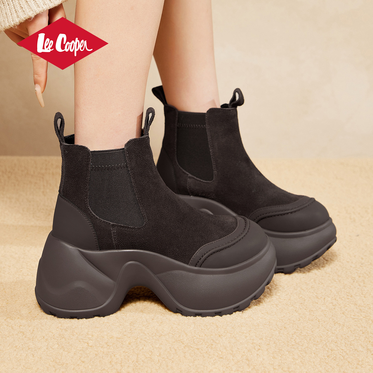 Lee Cooper切尔西靴女25秋冬新款小个子厚底松糕高跟加绒棉靴短靴