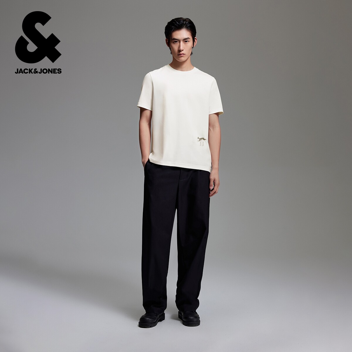 杰克琼斯男装2025年秋季新款潮纯棉法斗植绒刺绣舒适短袖男款T恤