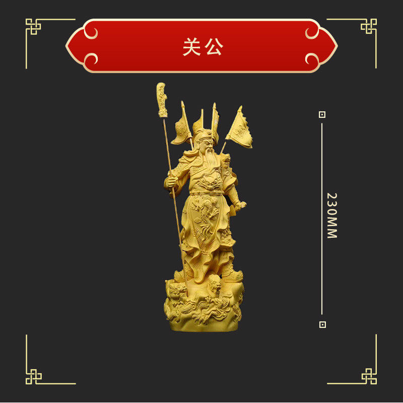 【关公】桧木黄杨木雕刻旗关公摆件五九龙关二爷武财神