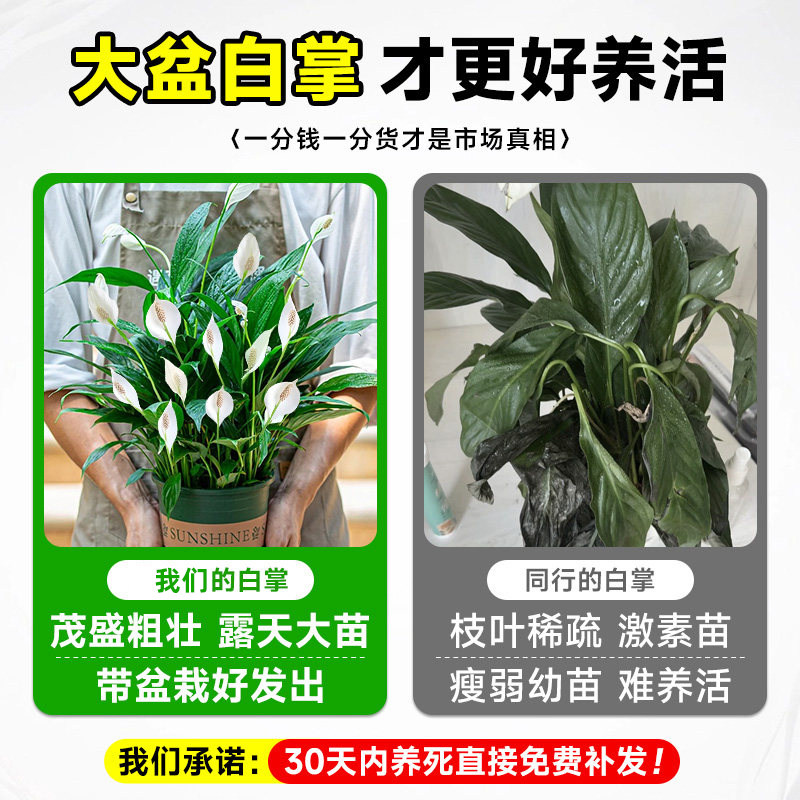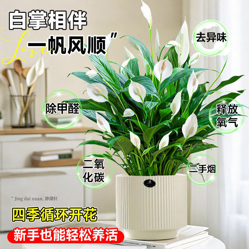 白掌绿植一帆风顺盆栽带花水培植物花卉办公室内绿植吸甲醛好养活