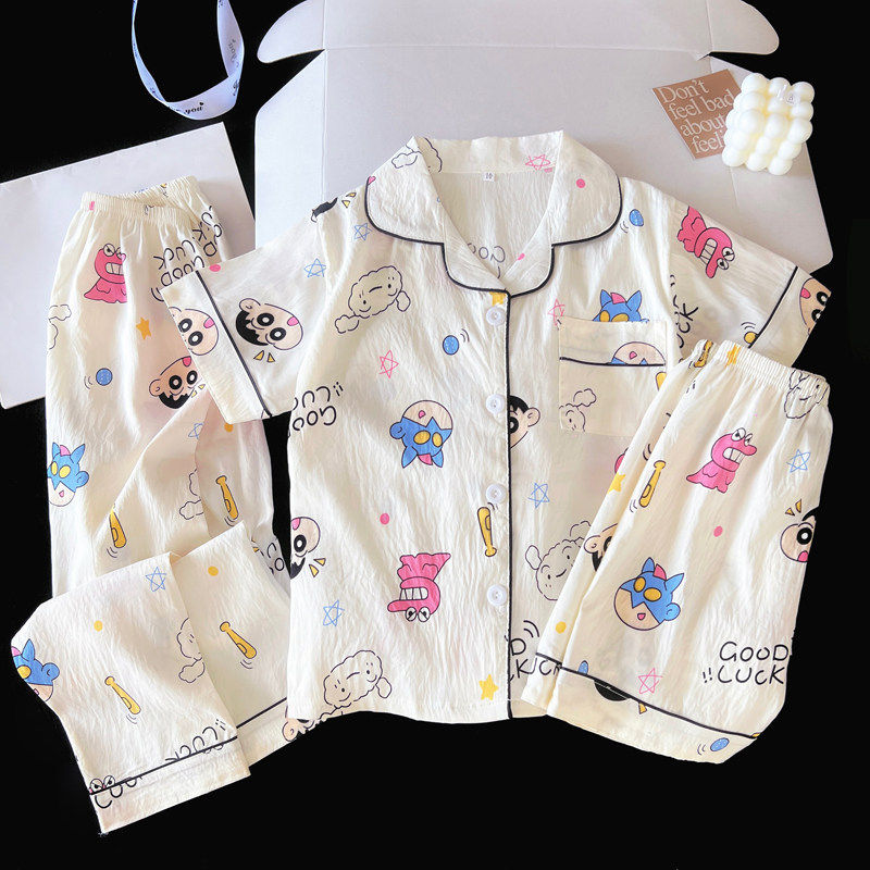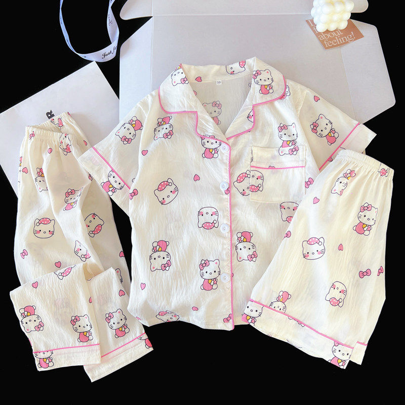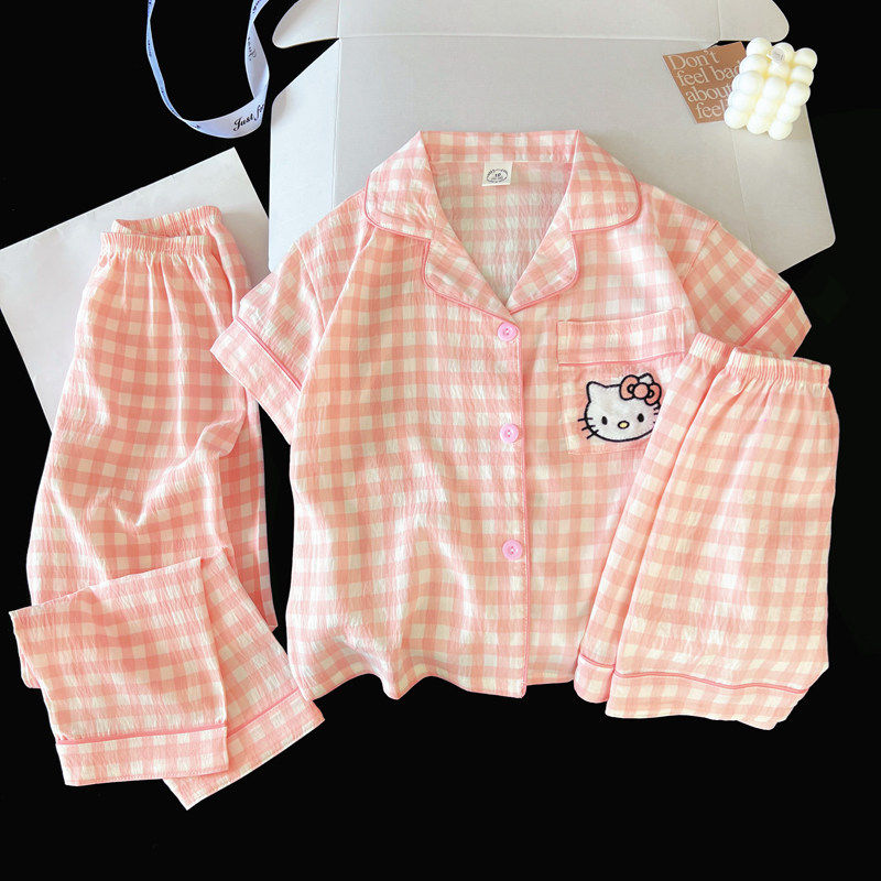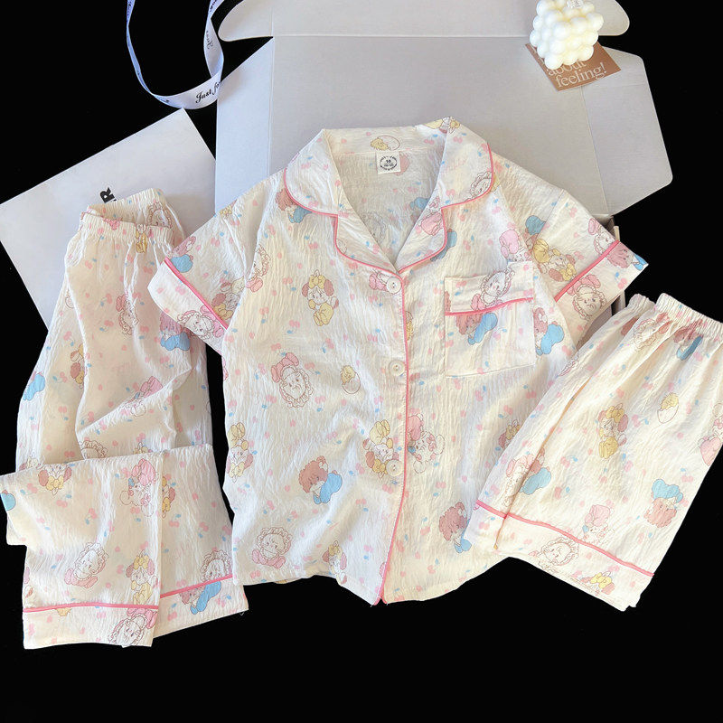 红豆睡衣女夏大童大码三件套薄款短袖长裤春秋季亲子母女装家居服