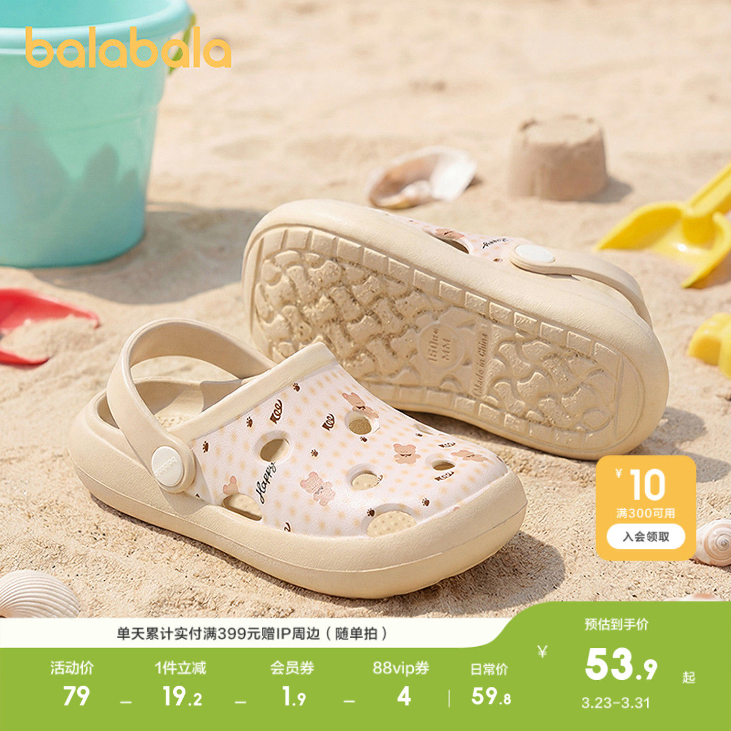 巴拉巴拉童鞋儿童拖鞋男女童2026年新款夏小熊印花洞洞鞋舒适透气