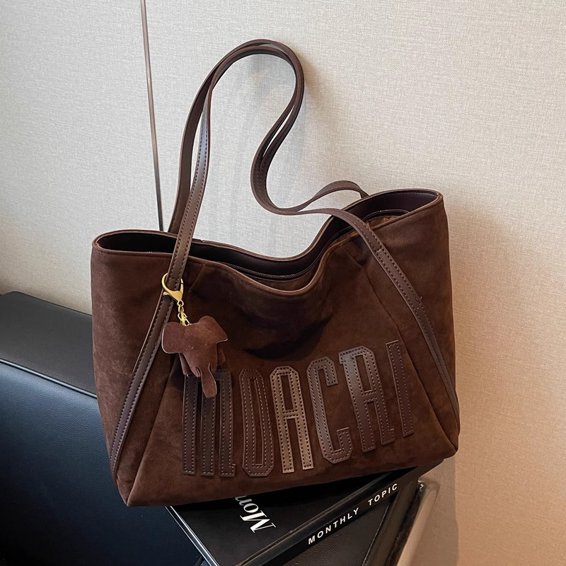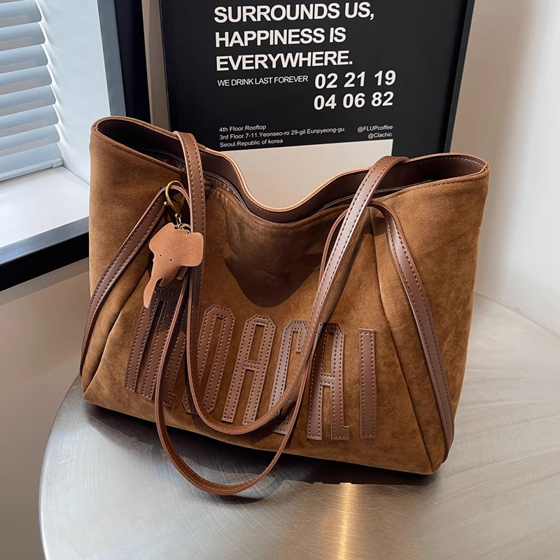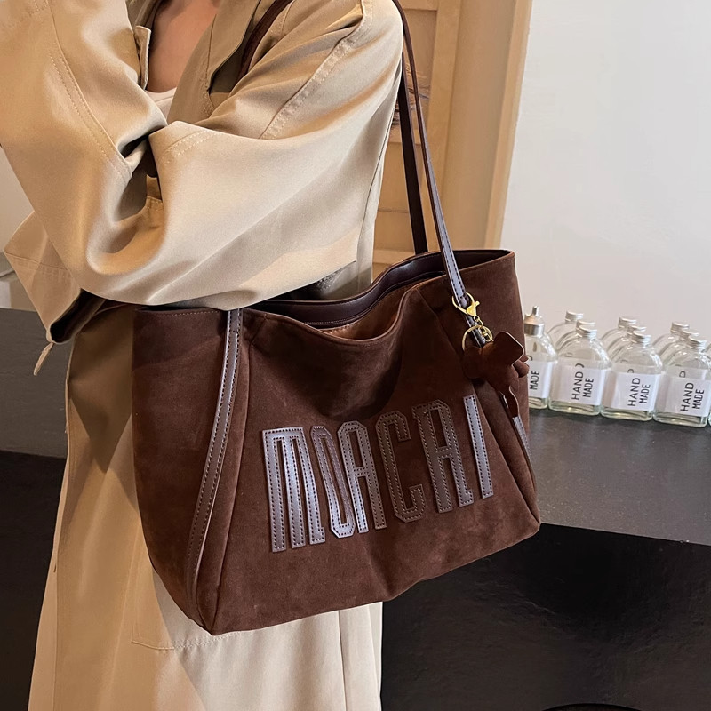 艾程麂皮绒包包女2026时尚高级感托特包大容量通勤单肩包大包黑色