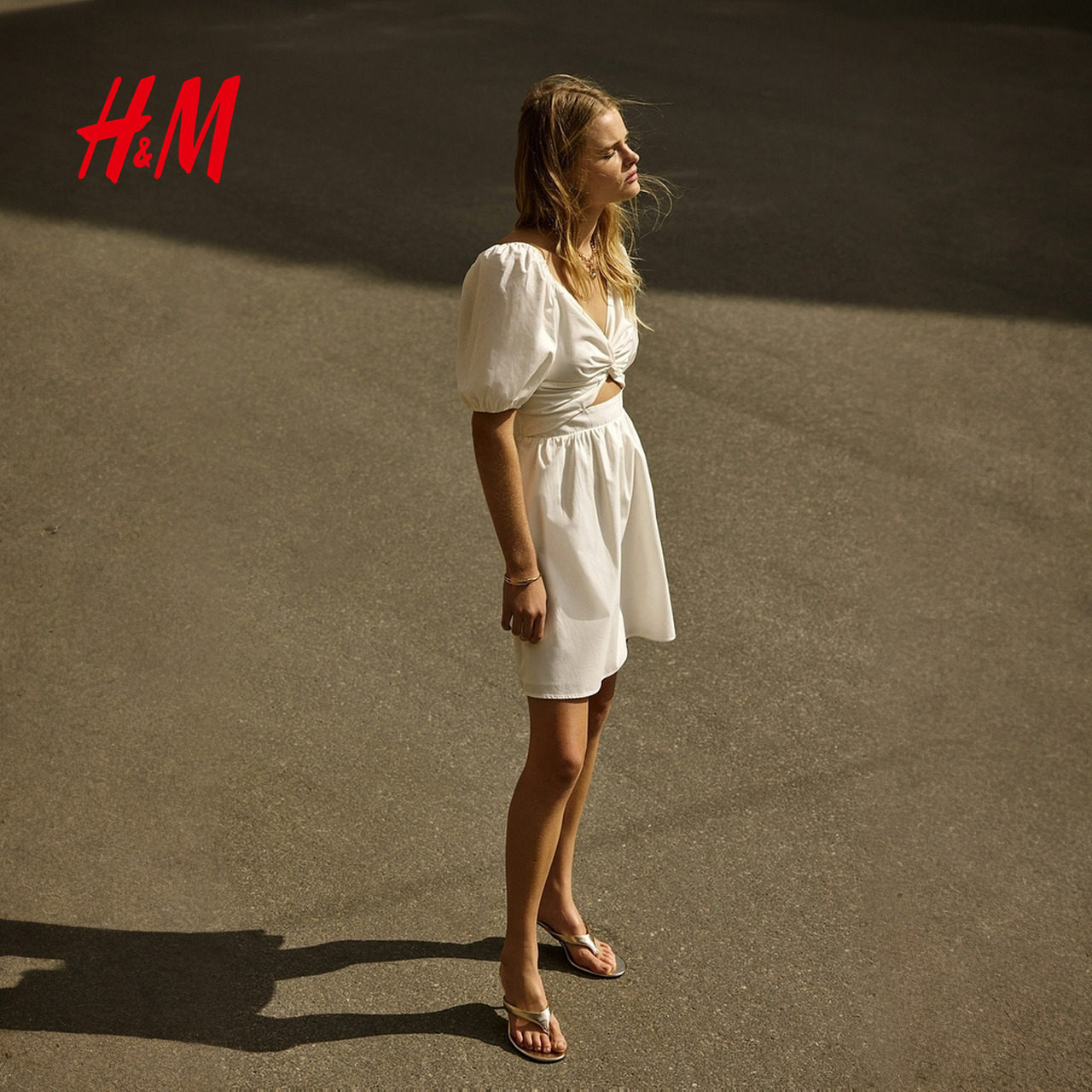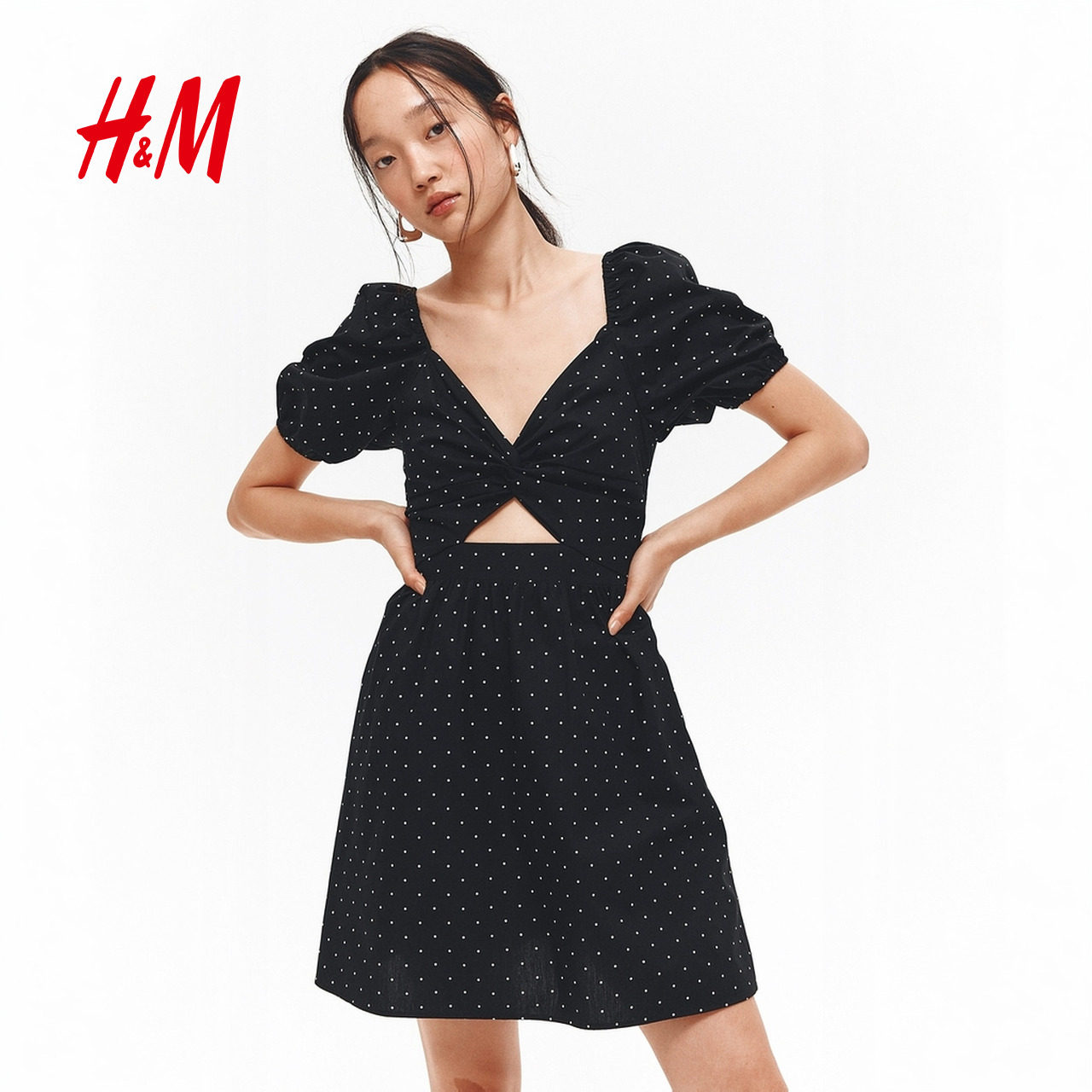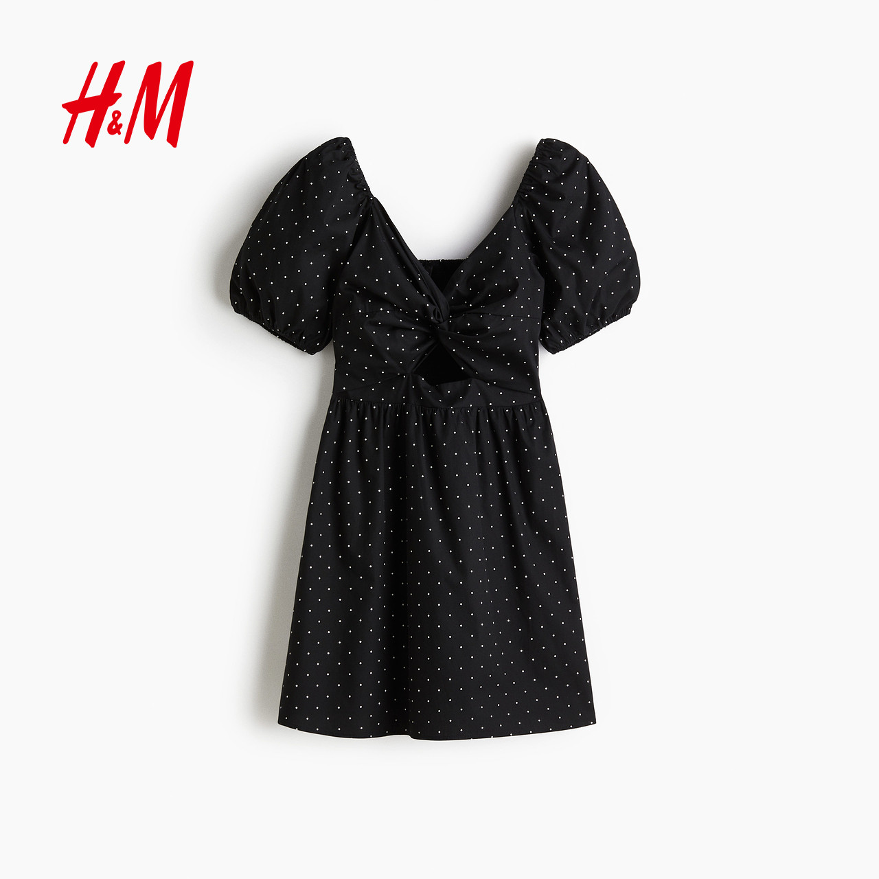 HM女装连衣裙夏季时尚气质扭结深v领短裙千金风a字连衣裙1295557