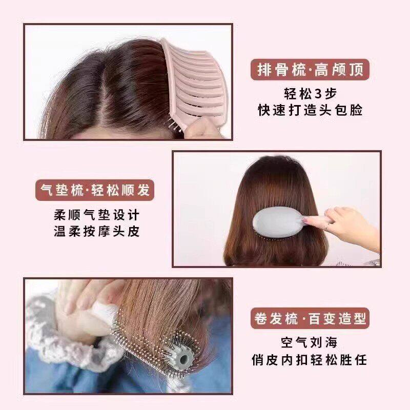 蓬松气垫梳长发梳套装组合气囊直发梳子学生宿舍女家用卷发按摩梳