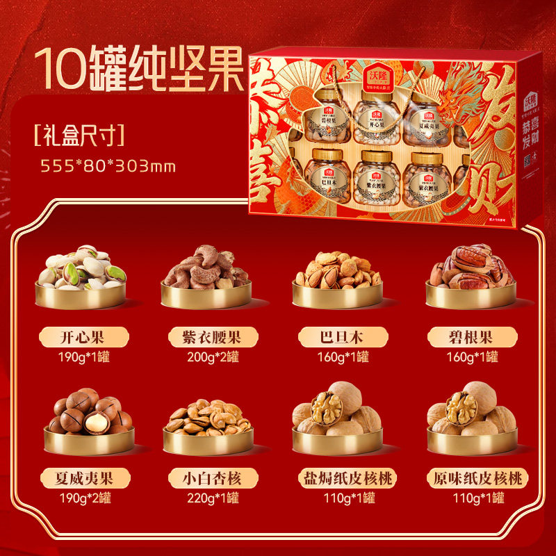 【k姐年货节】沃隆鸿运当头1.7kgx2盒纯坚果定制年货礼盒8罐