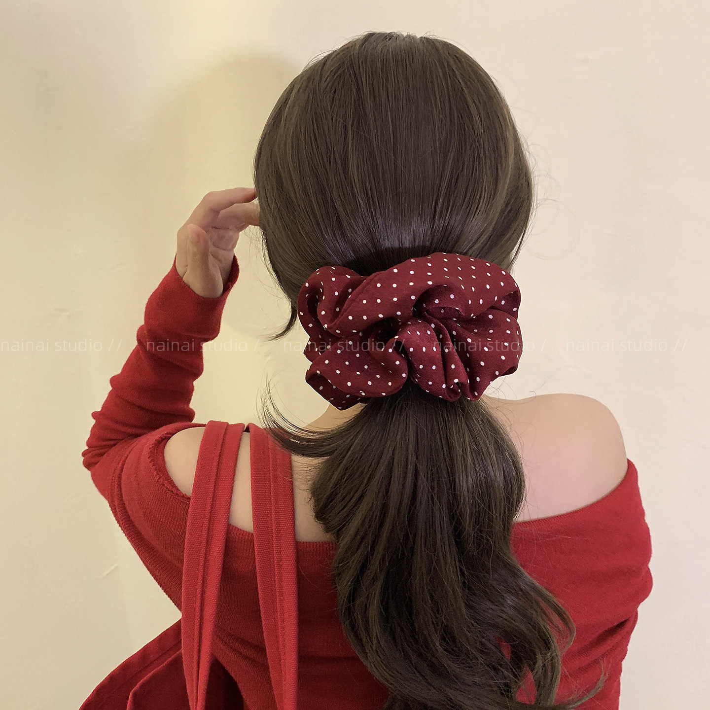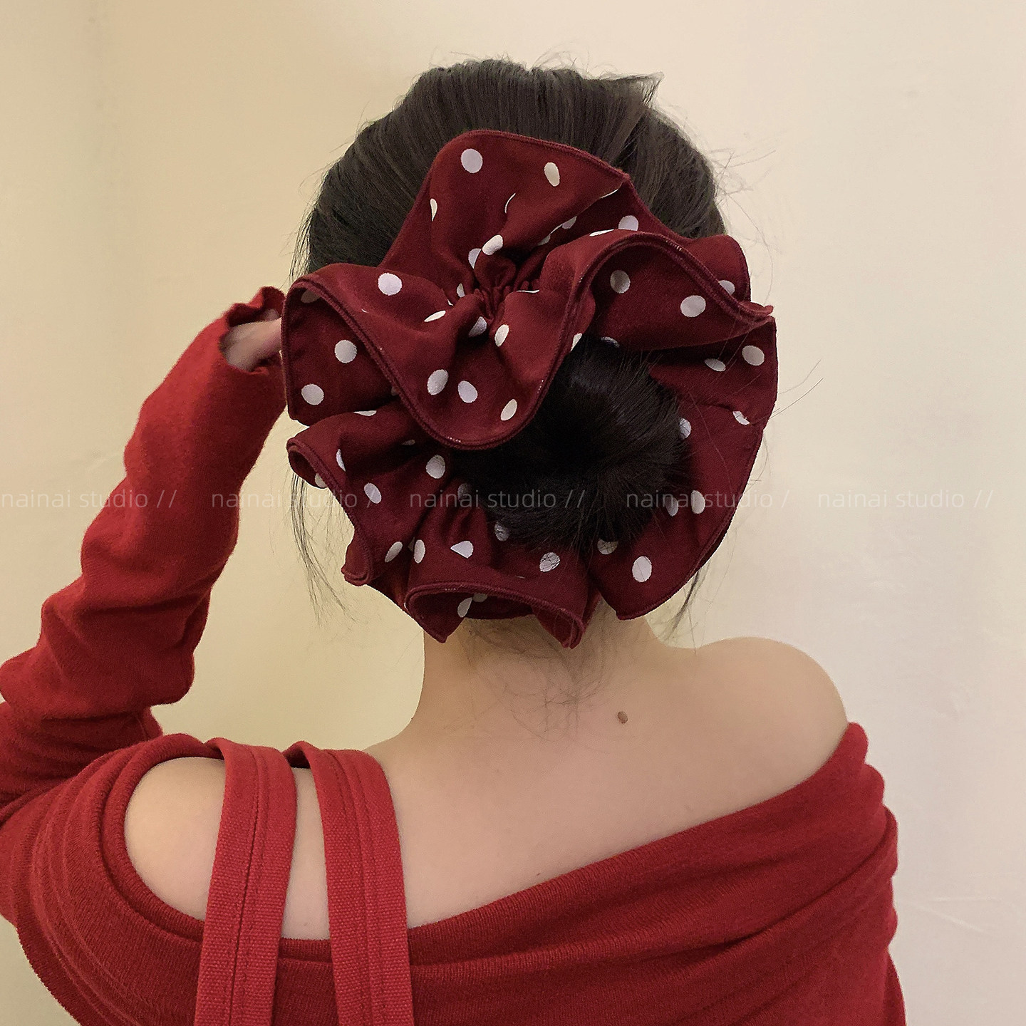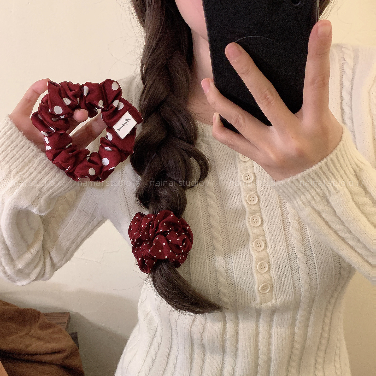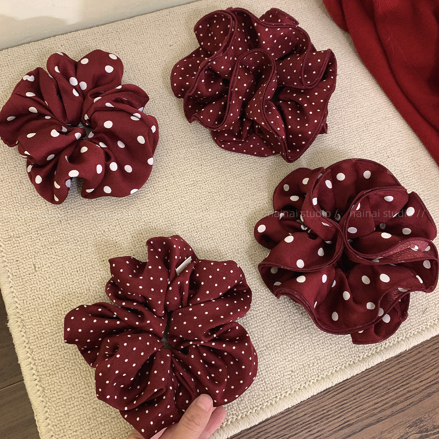 红色波点大肠发圈~新年四层大号缎面丸子头扎马尾发绳头绳头花女