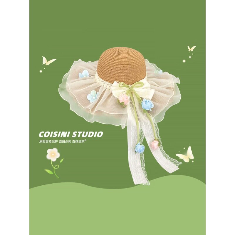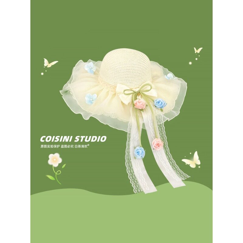 优雅气质风铃花朵蕾丝草帽女士春夏季防晒海边度假波浪边遮阳帽子
