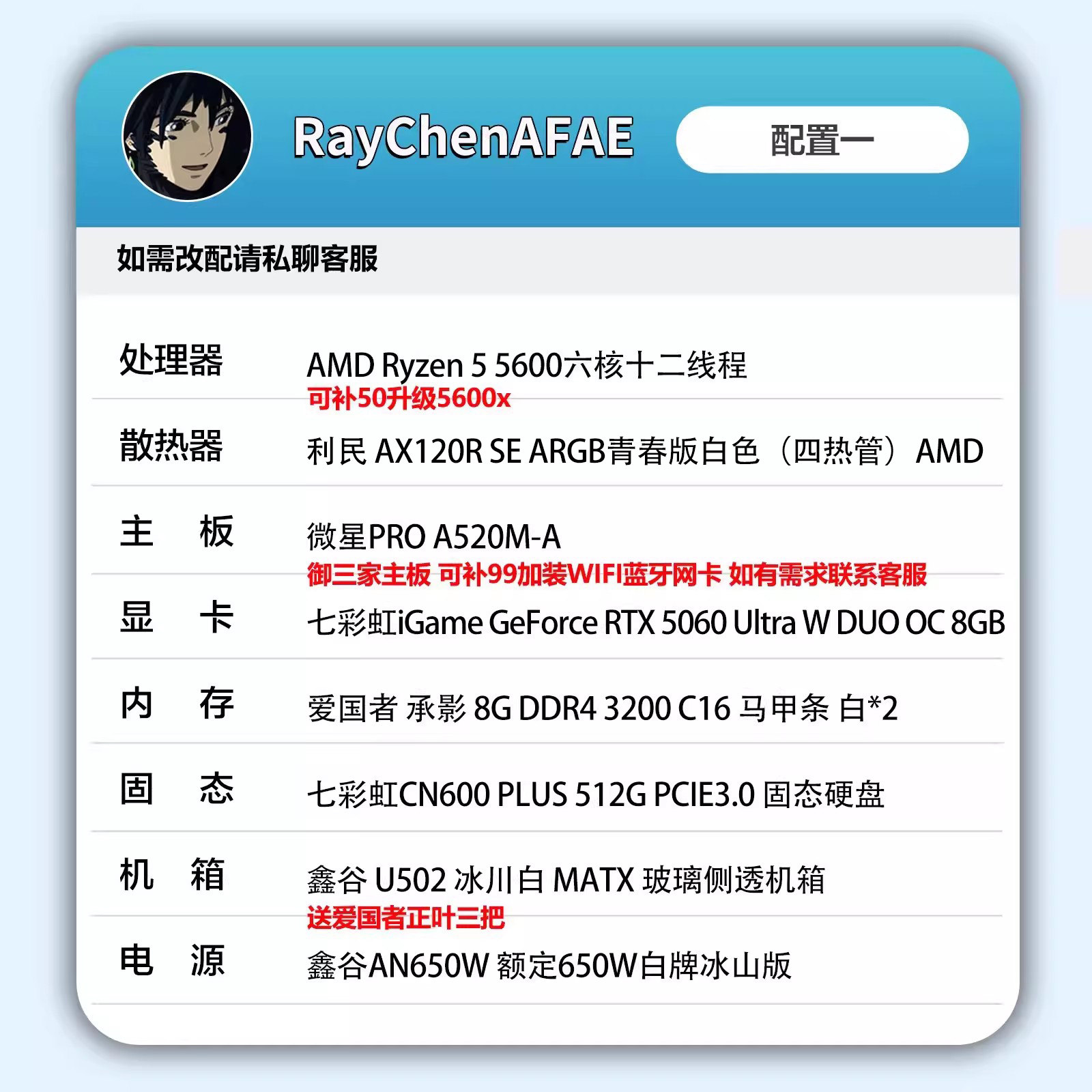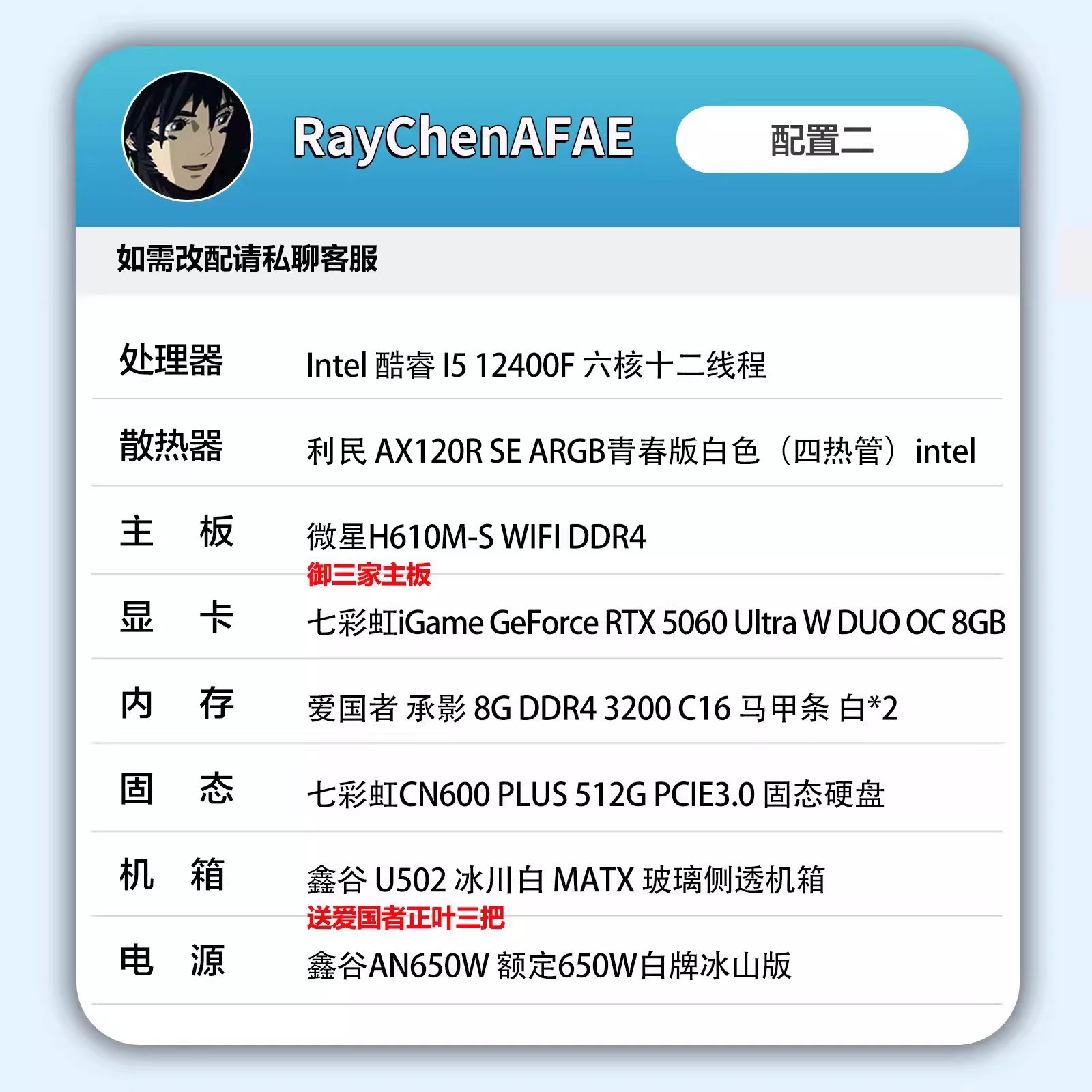 RTX5060+R5 5600/I5 12400F 高性能DIY游戏电脑主机