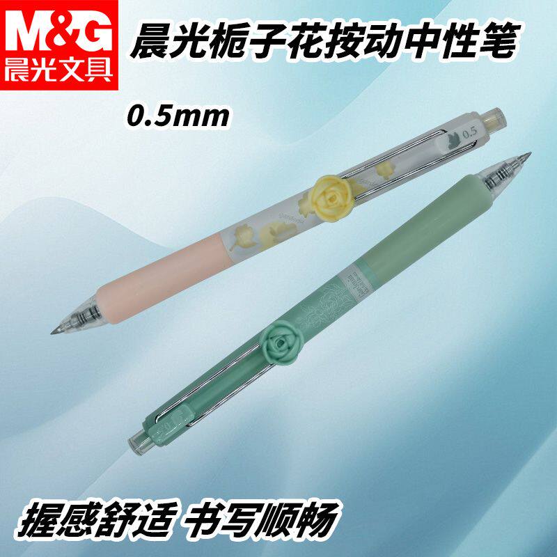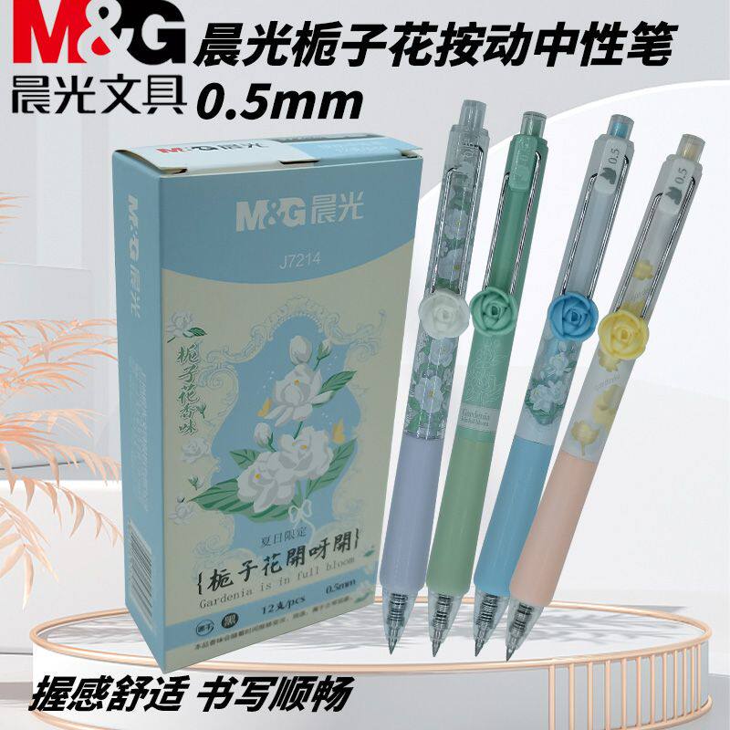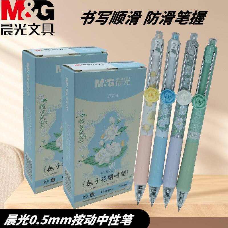 晨光AGPJ7214按动中性笔栀子花开速干0.5黑高颜值刷题考试书写用
