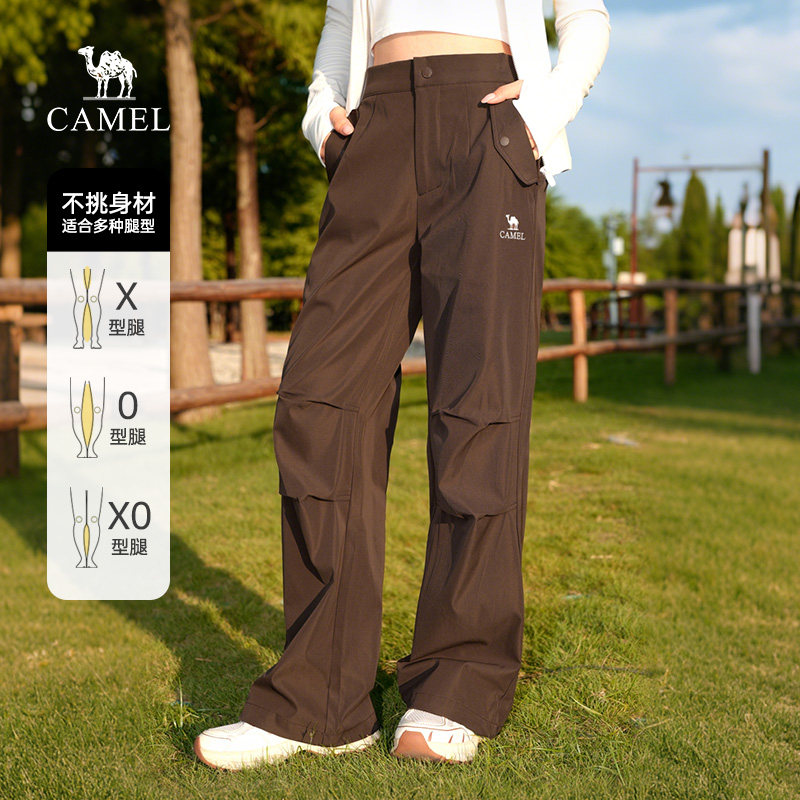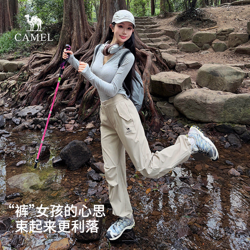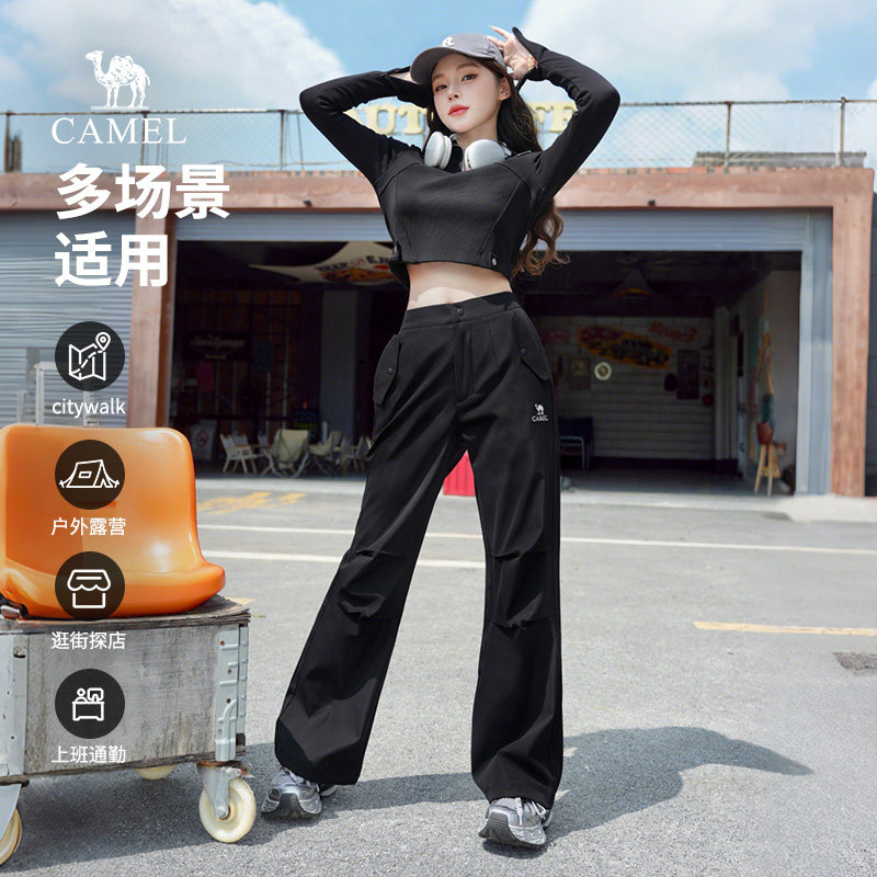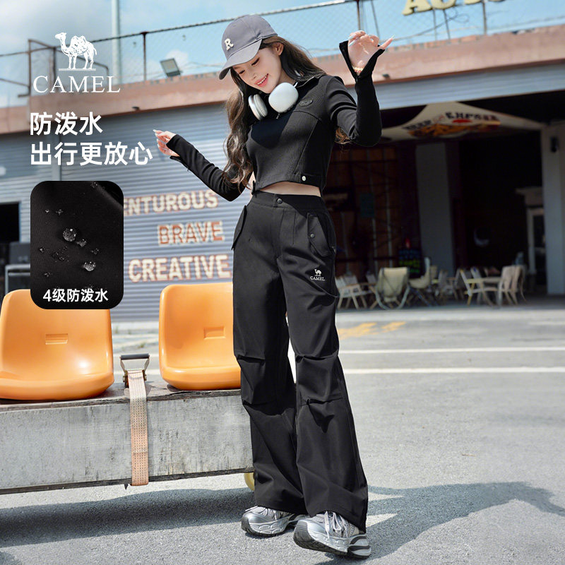 骆驼女装防泼水工装裤2026春秋宽松轻薄显瘦抽绳阔脚休闲长裤