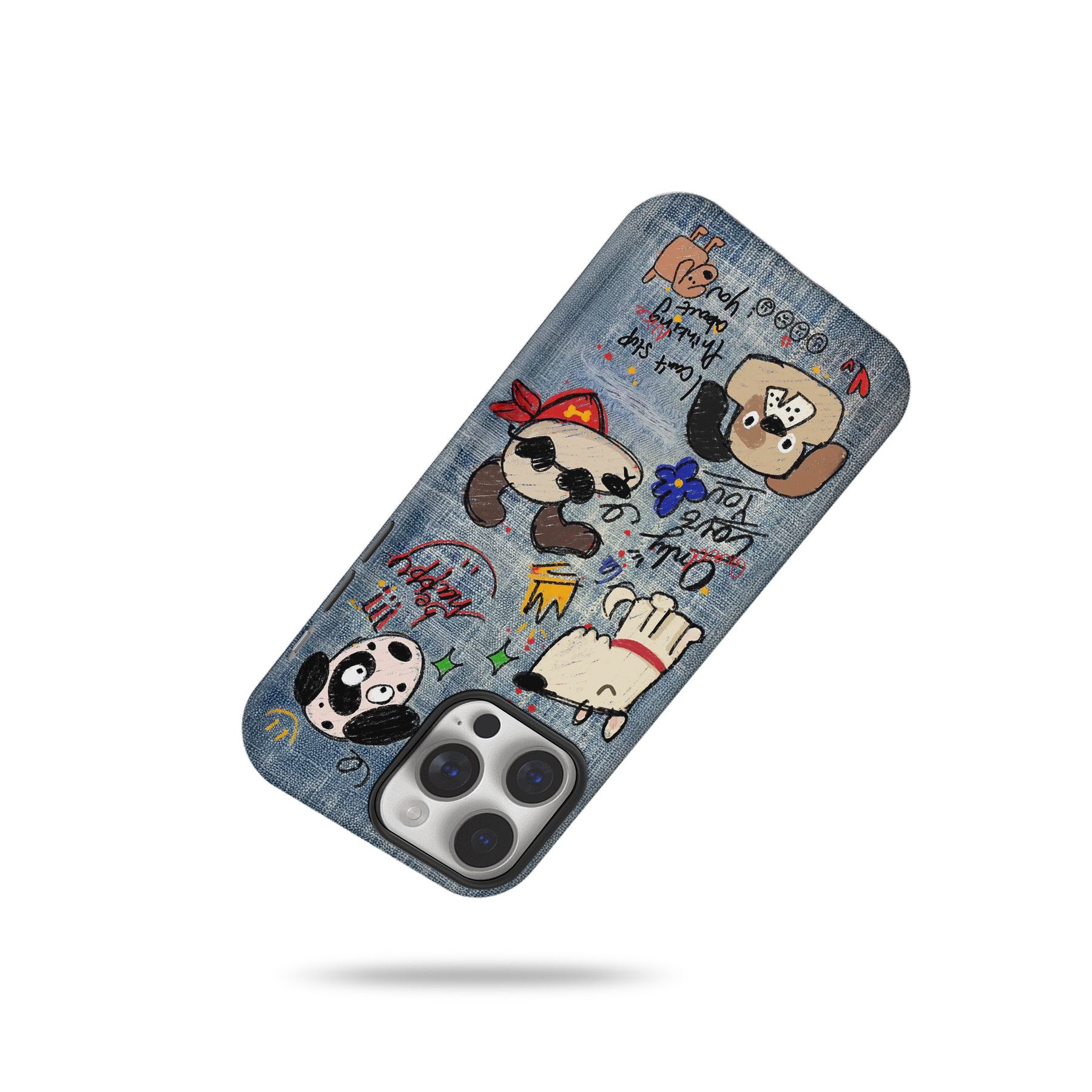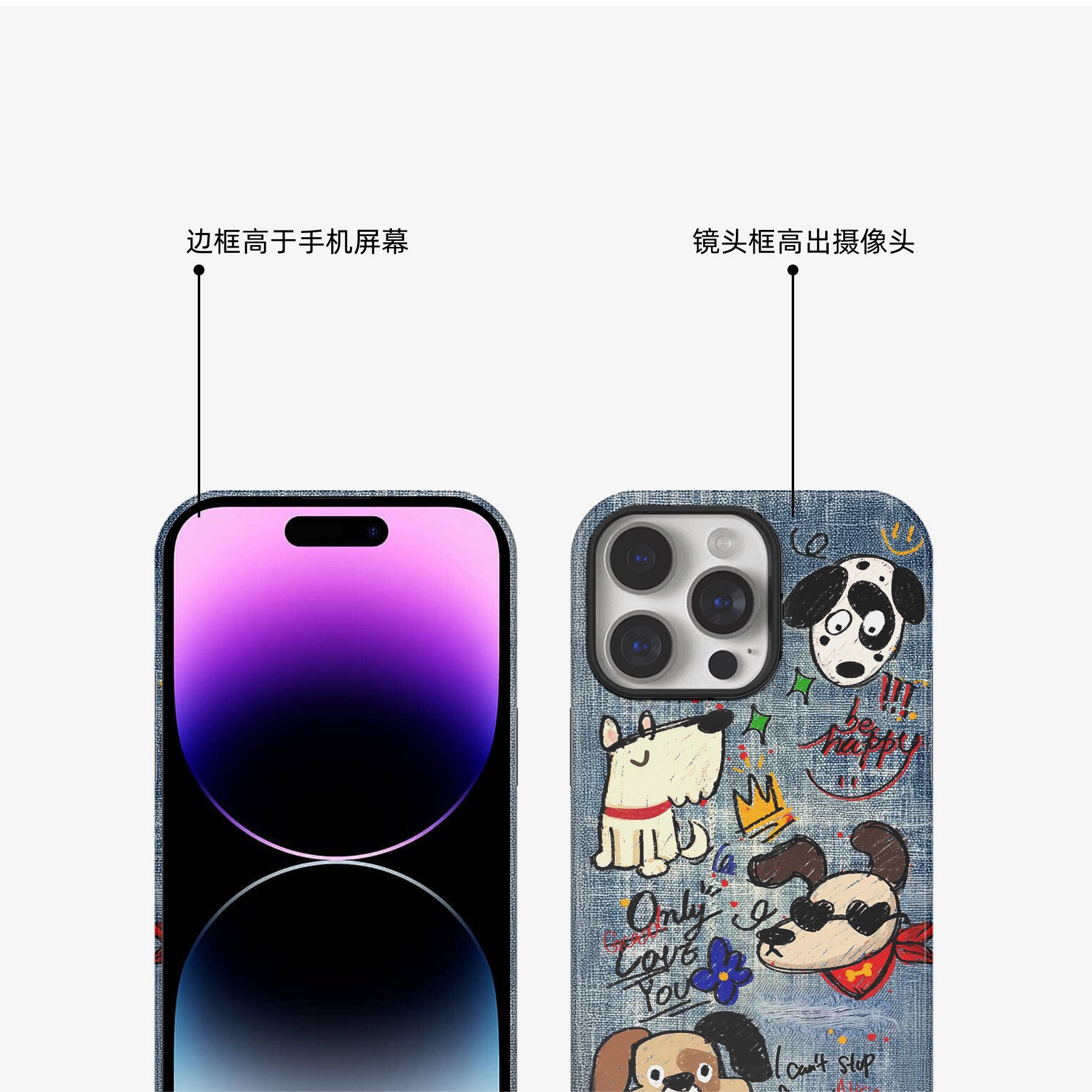 港风牛仔小狗适用苹果17promax手机壳软磁吸iPhone16新款原创15小众复古14涂鸦美式13华为oppo小米手机壳防摔