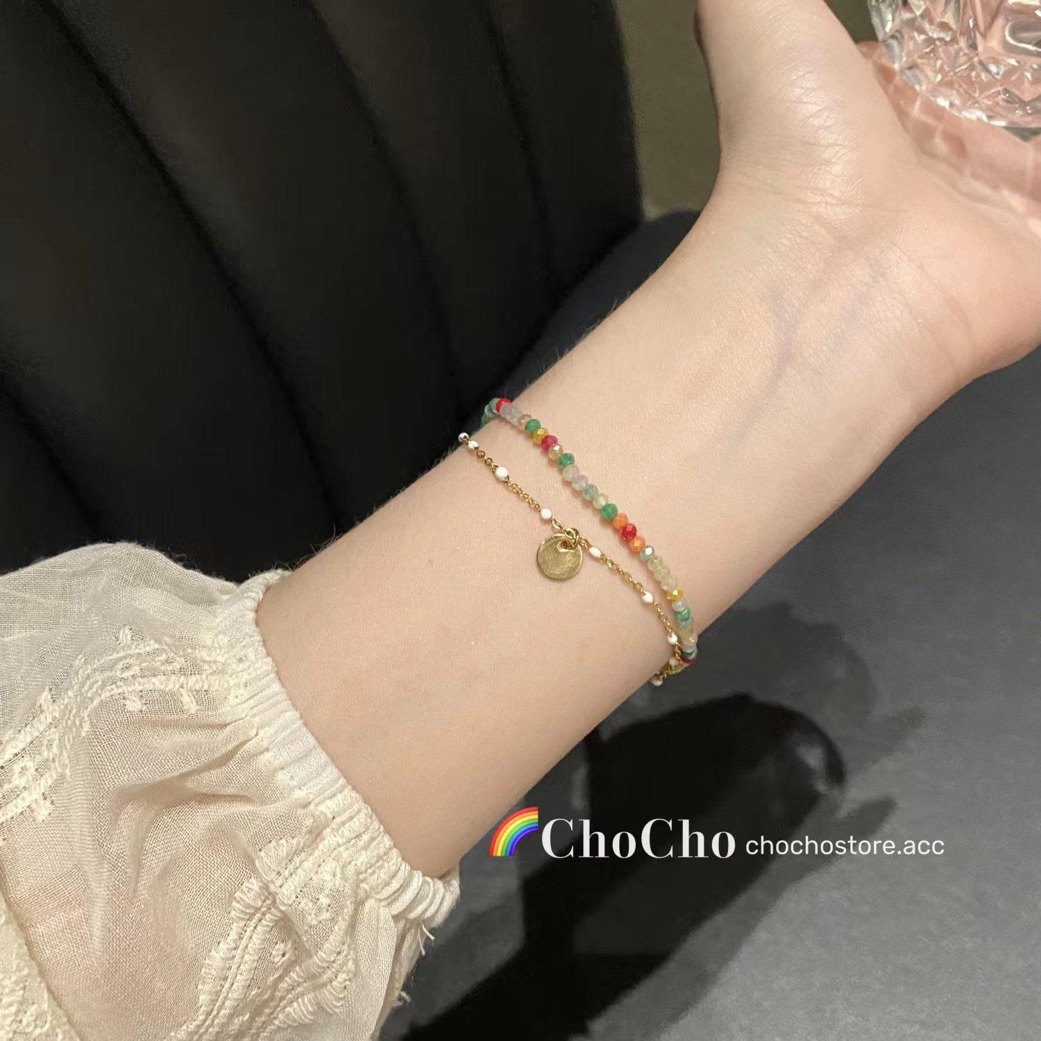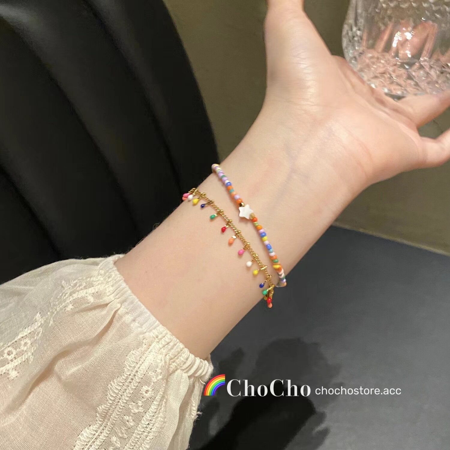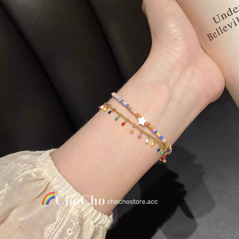 流苏串珠双层多巴胺手链女夏季轻奢小众精致叠戴彩色手串闺蜜手饰