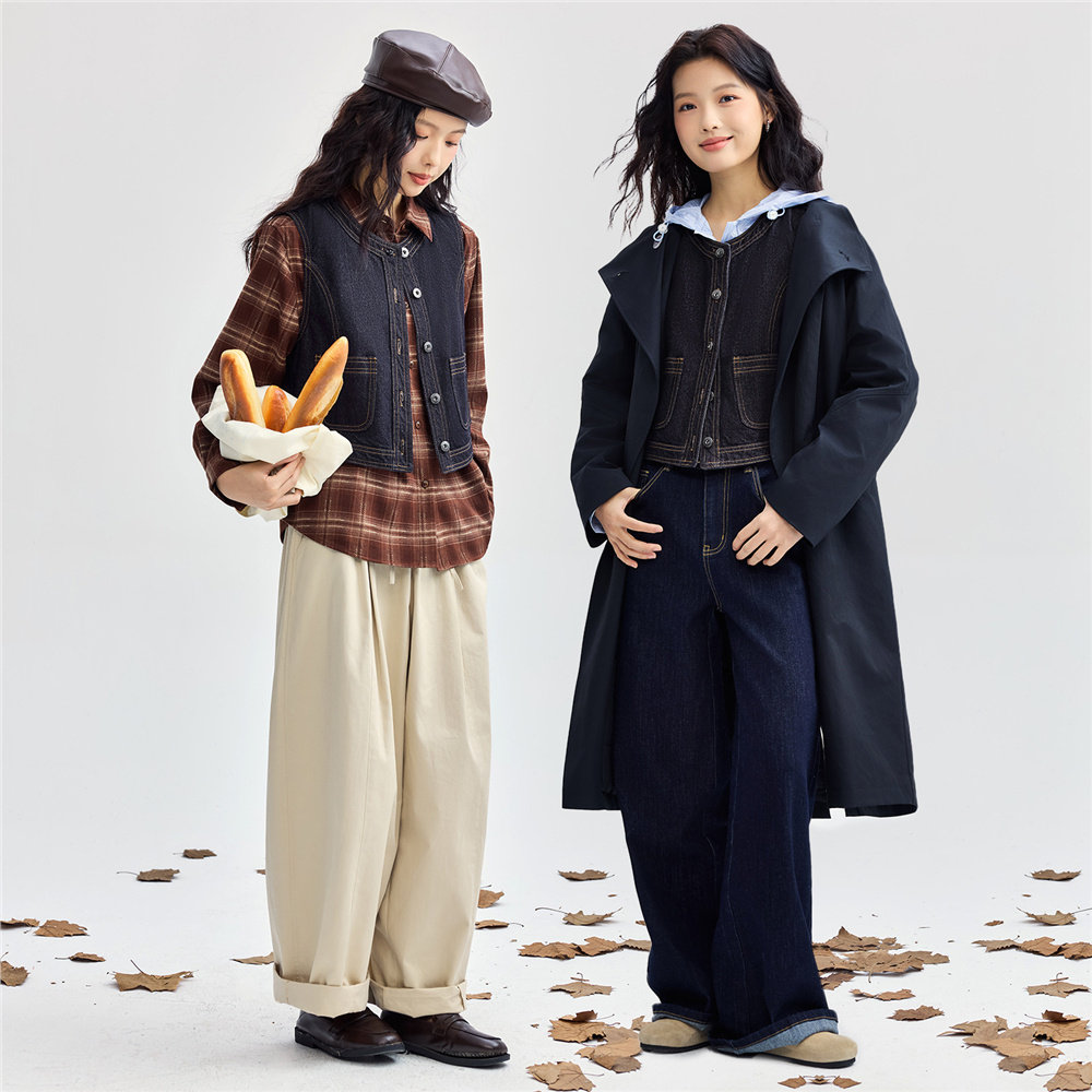 洗水牛仔亲肤有型 明线短款马甲时尚复古