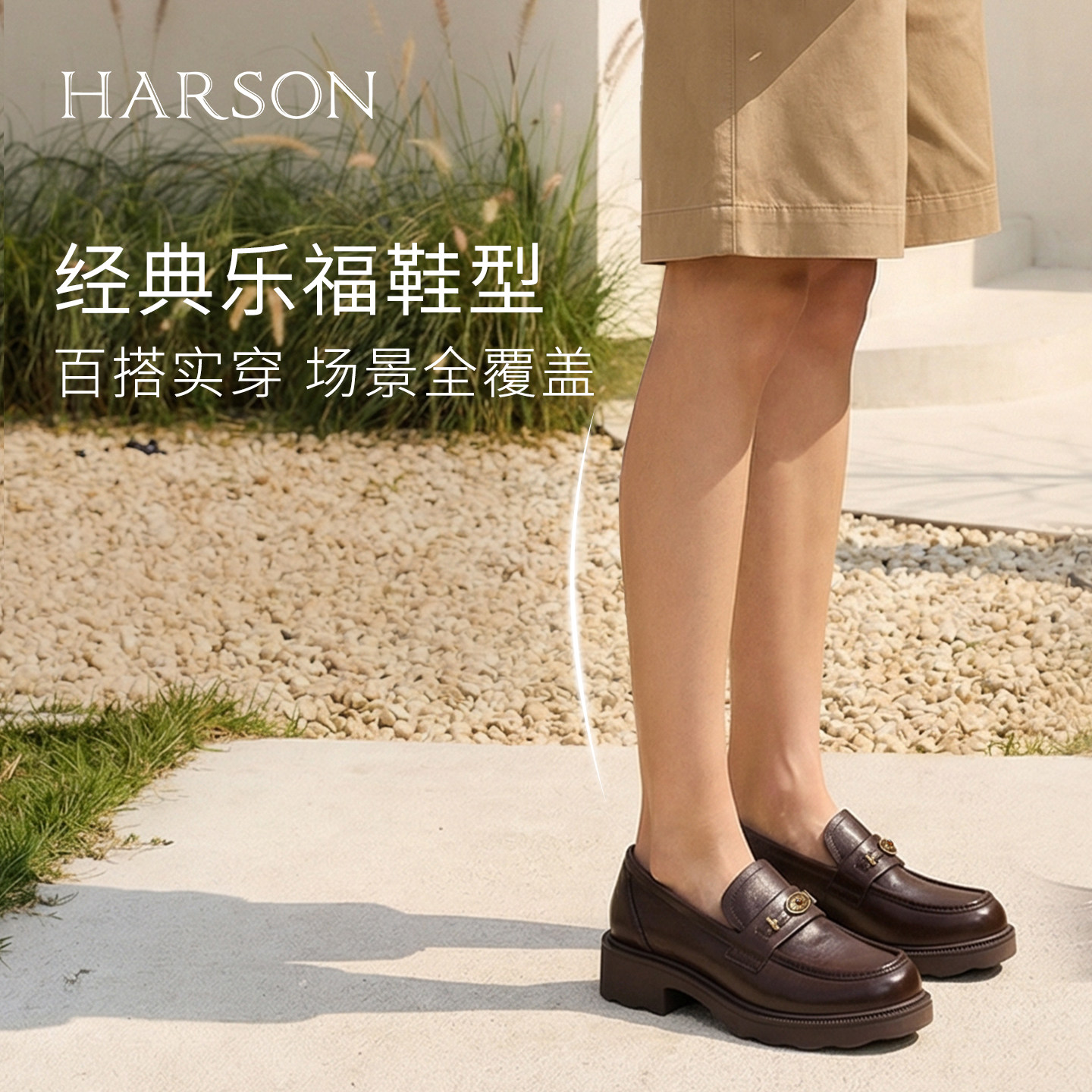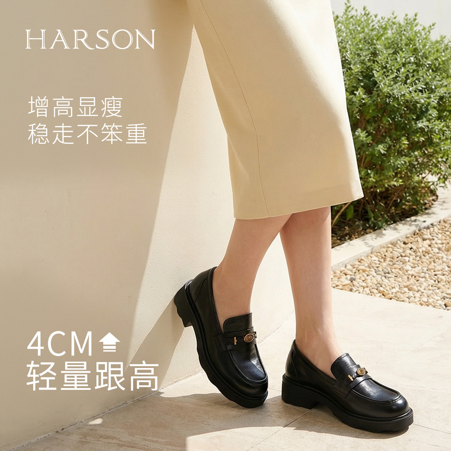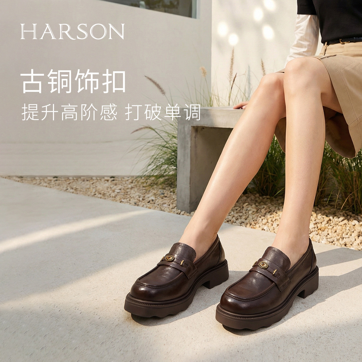 哈森羊皮乐福鞋经典皱面厚底皮鞋学院风女鞋2026新款HWS260116