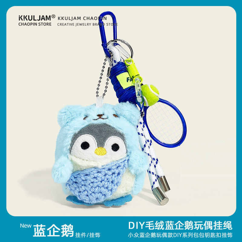 卡通毛绒小企鹅钥匙扣玩偶背书包包网球拍挂件公仔挂饰情侣高级感