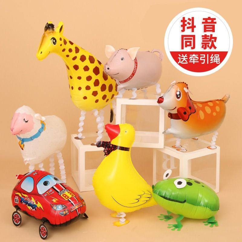 Q版走路带轮子动物立体气球狗卡通儿童生日装饰场景布置户外摆摊
