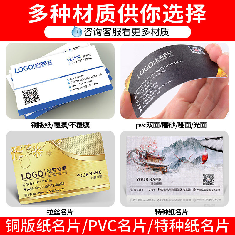 名片制作订做定做双面印刷卡片PVC塑料明片广告宣传卡定制免费设计优惠券订制做公司商务创意高档打印特种纸