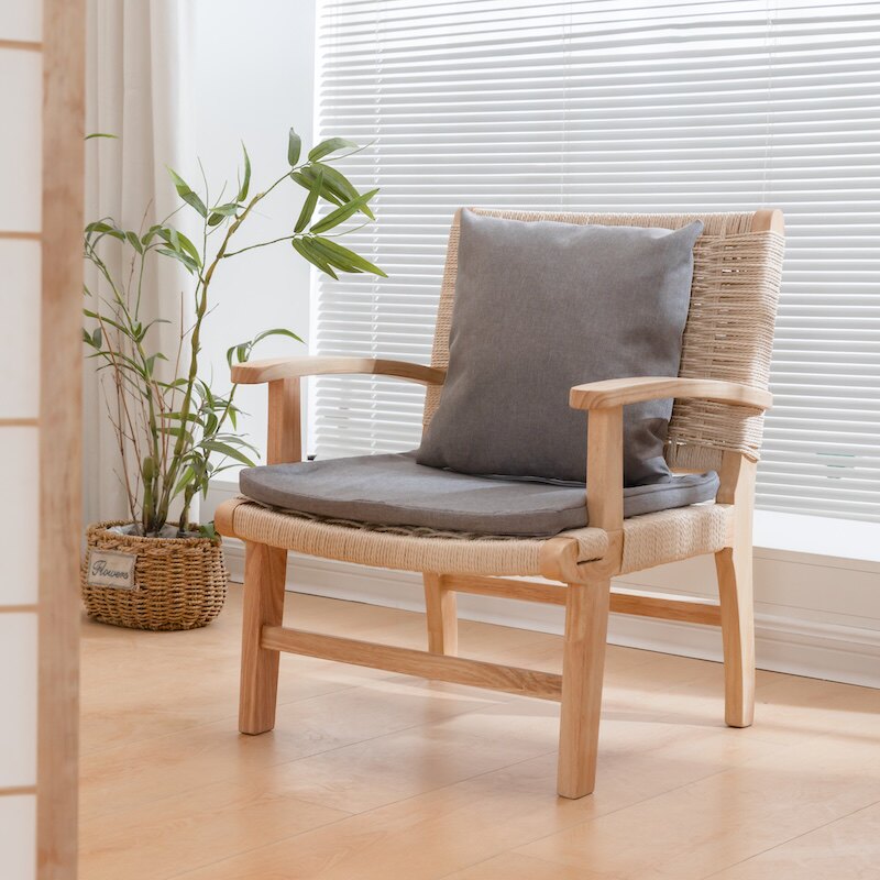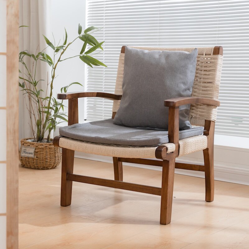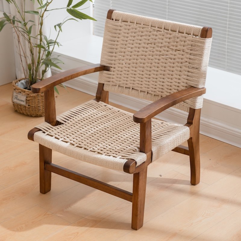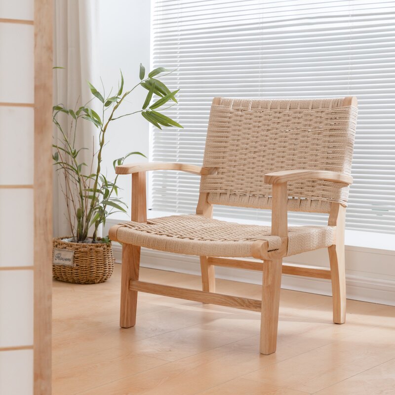 实木框免组装;高靠背依靠更舒适;手工编织