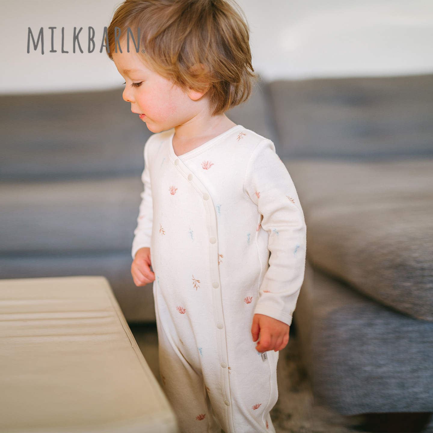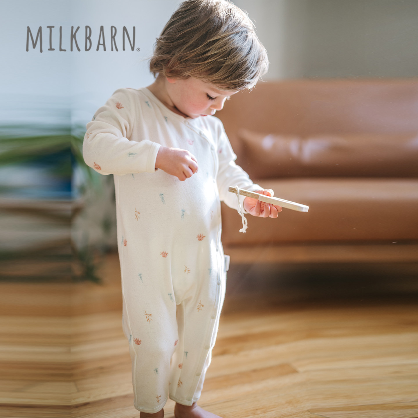 Milkbarn2026春夏新品婴儿长袖斜襟连体服小月龄宝宝简约哈衣爬服