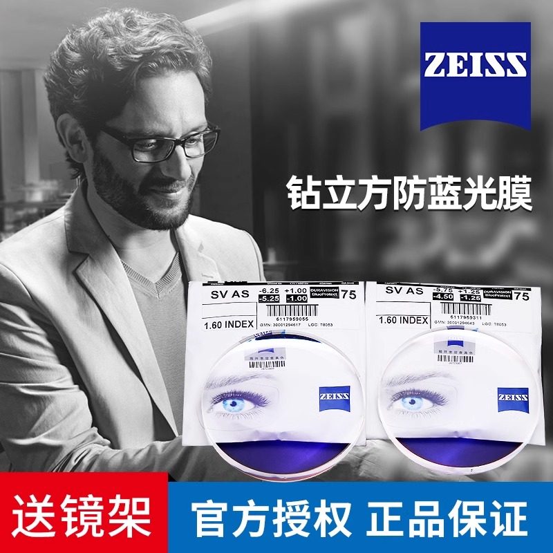 蔡司镜片防蓝光1.74配近视眼镜钻立方新清锐铂金膜官方旗舰店