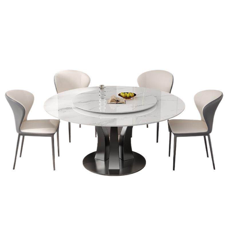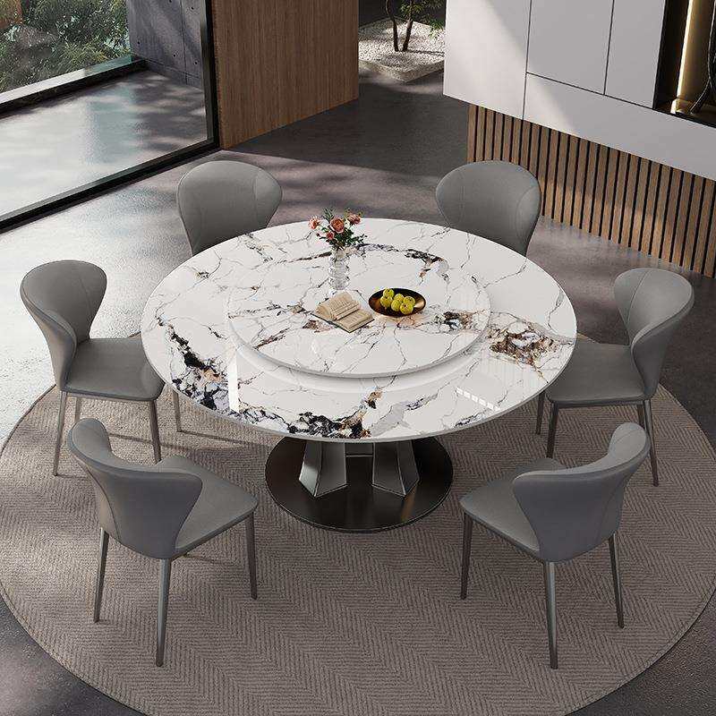 意式轻奢天然超晶石餐桌奢石微晶石圆桌家用岩板新款大理石圆餐桌