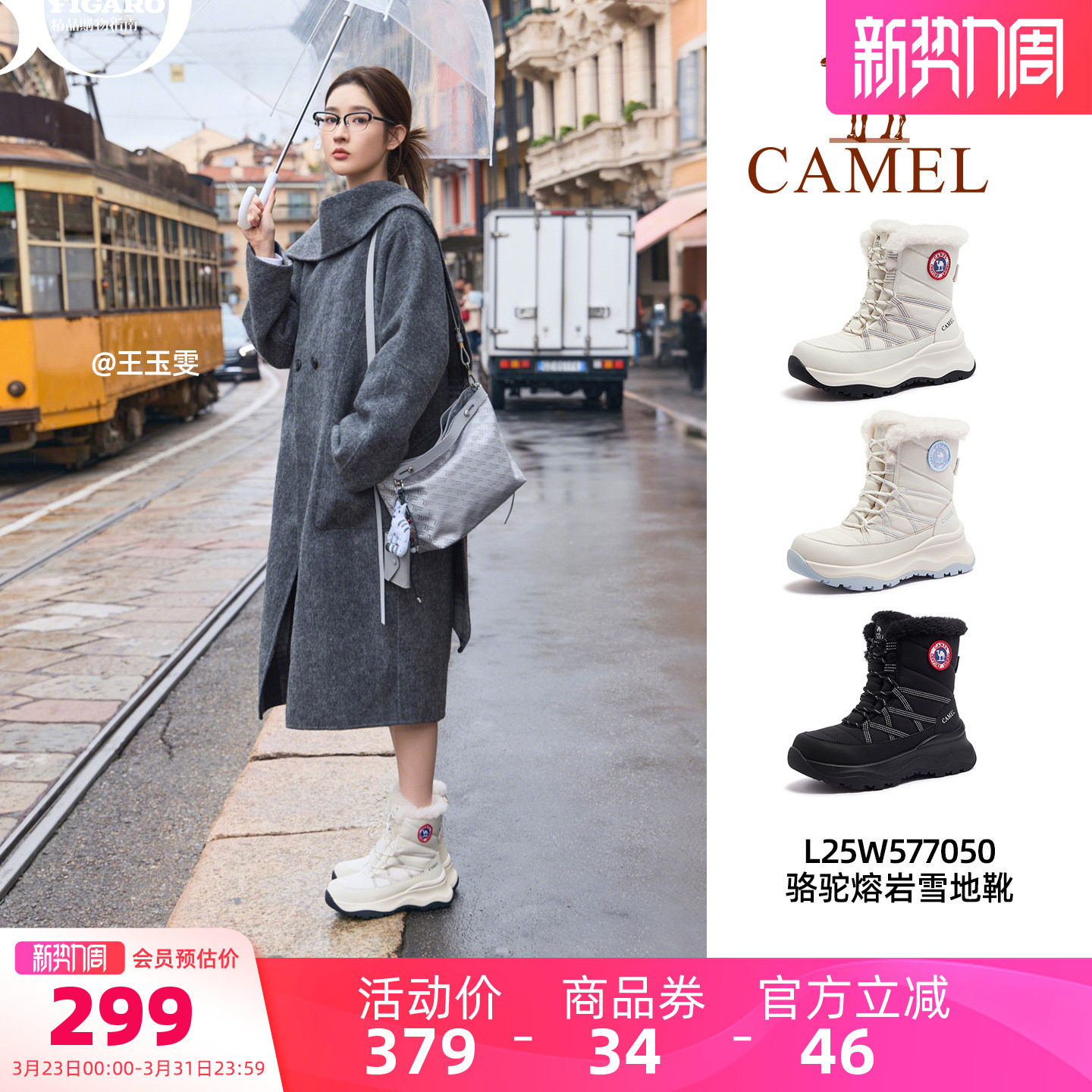 骆驼熔岩雪地靴女鞋2025冬季新款户外短靴女厚底加绒东北保暖棉鞋