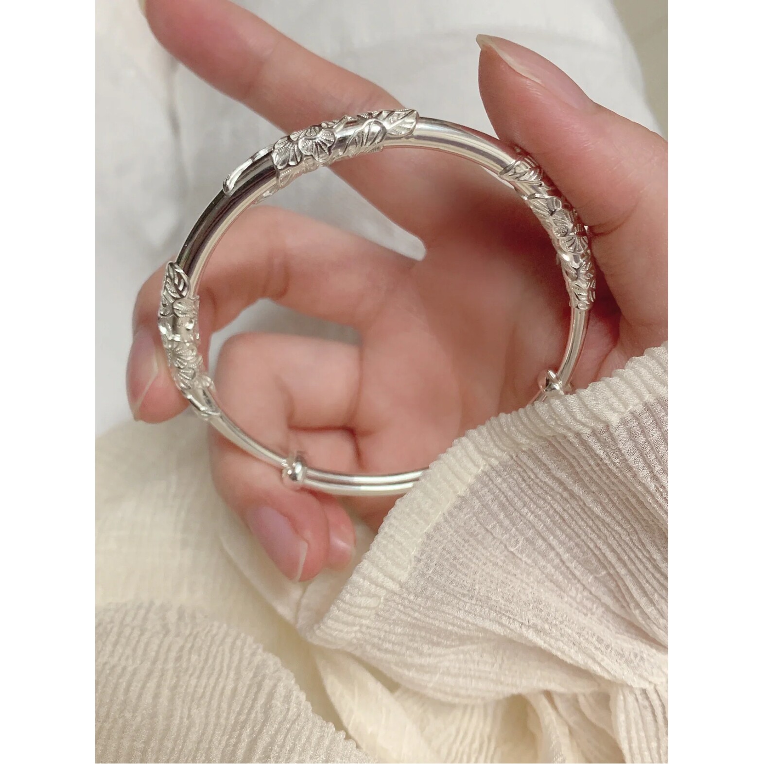 【幂琳】繁花似锦银手镯女纯银s999足银手链实心送女朋友七夕情人