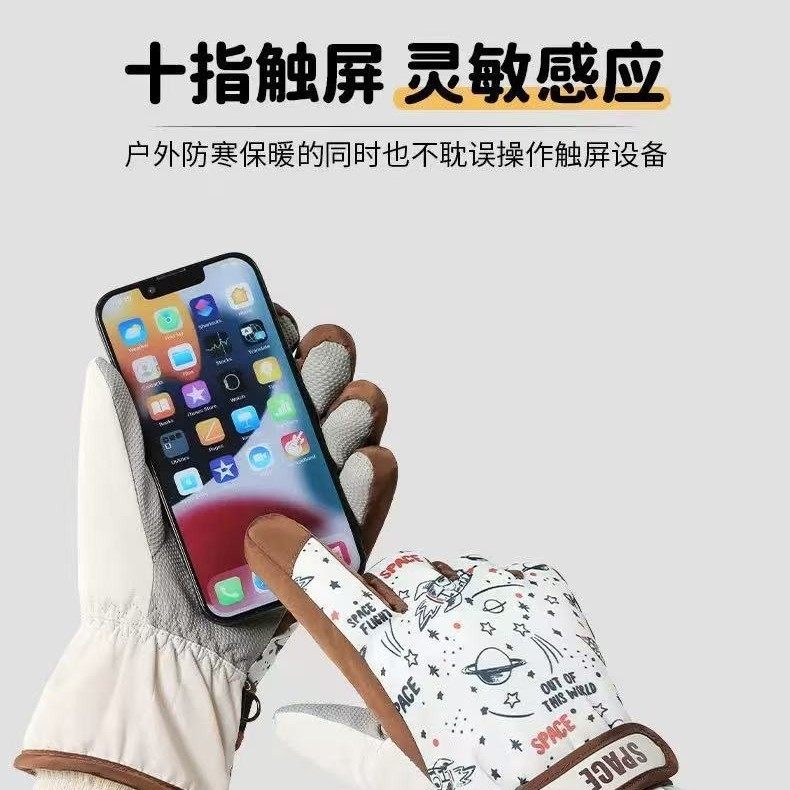 滑雪手套男女冬季骑行防水玩雪防寒骑车加绒保暖防风分指触屏儿童