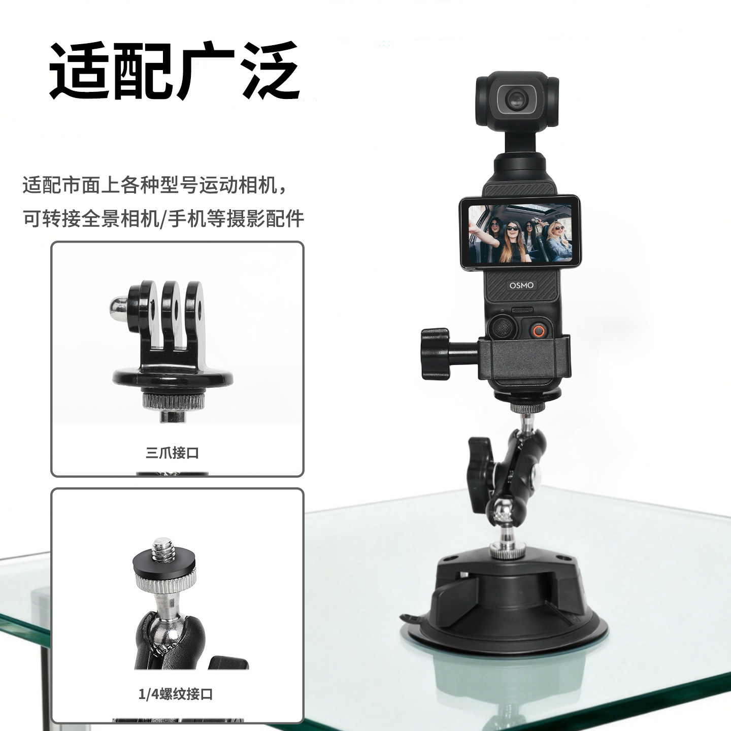 汽车吸盘适用大疆dji pocket3/action6/5/osmo360/nano运动相机玻璃支架影石insta360x5/x4/acepro2车载支架