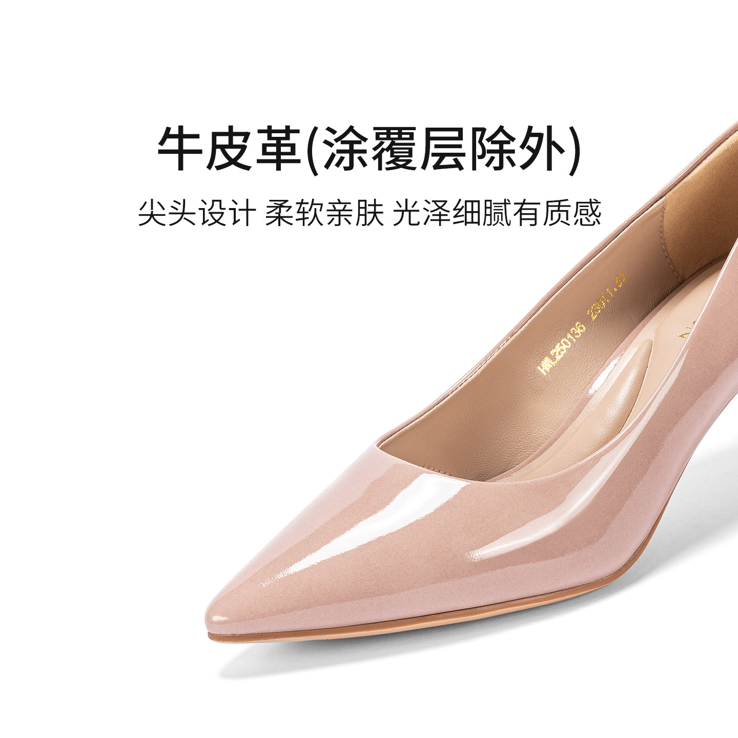 【明星同款|静音系列】千百度练习曲裸色高跟鞋真皮通勤法式单鞋