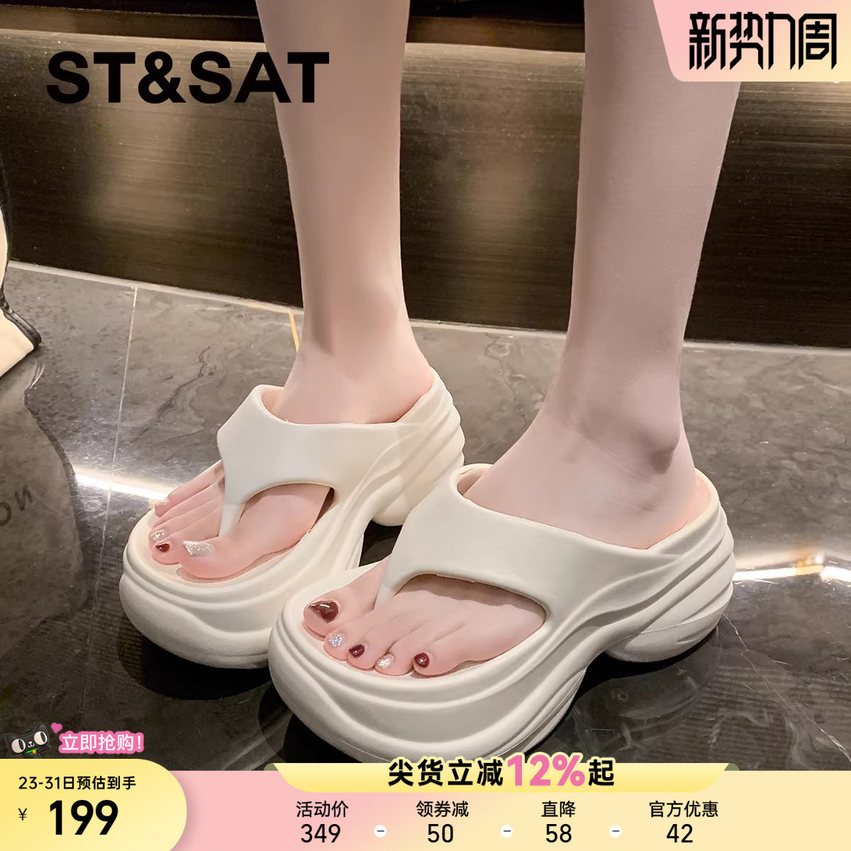 星期六EVA凉拖超厚底人字拖鞋女2025夏季新款厚底外穿海边沙滩鞋