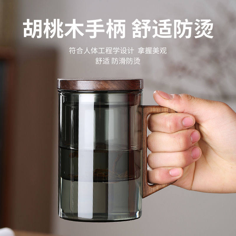 高硼硅玻璃泡茶杯办公室茶道个人专用绿茶杯男士茶水分离杯