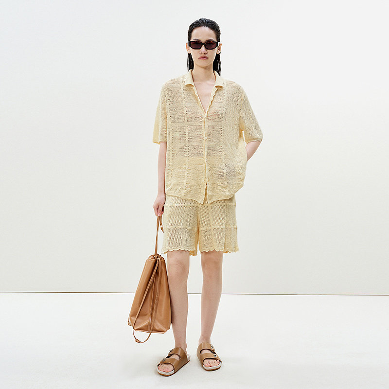 LESS时髦度假风短裤女夏季编织感镂空针织直筒裤子含里2P4E10230