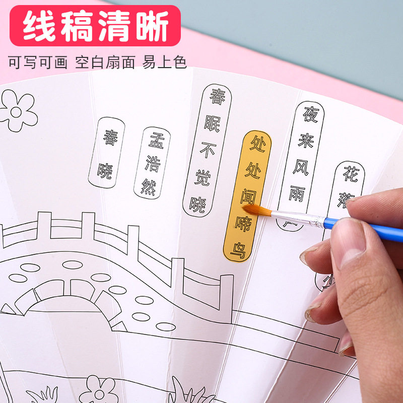 儿童DIY涂鸦七折扇卡通填色幼儿园益智手工绘画扇夏季随身礼品