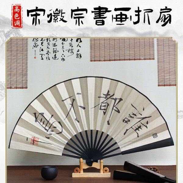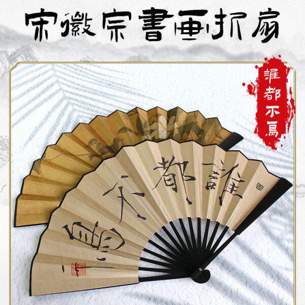 宋徽宗赵佶谁都不鸟书画瘦金体折扇 写生翎毛图10寸中式扇子折扇