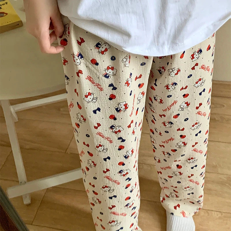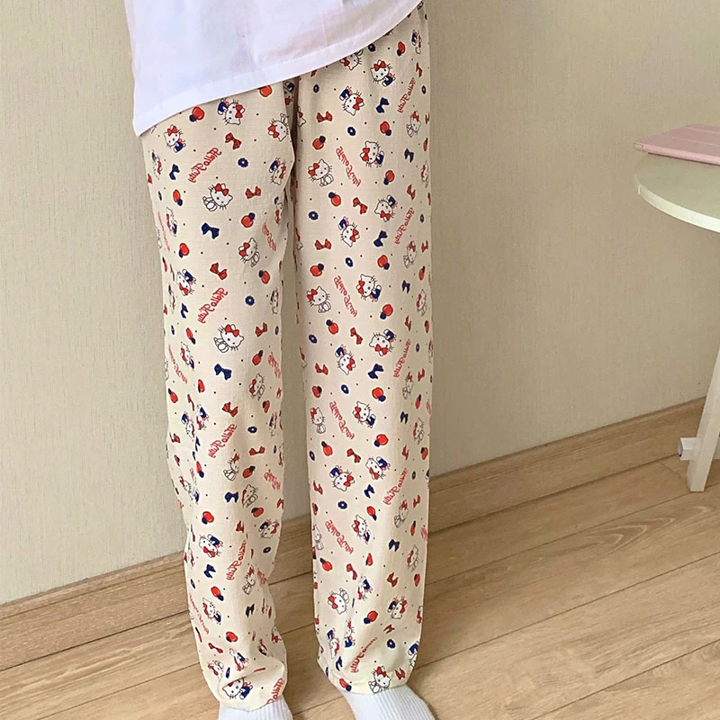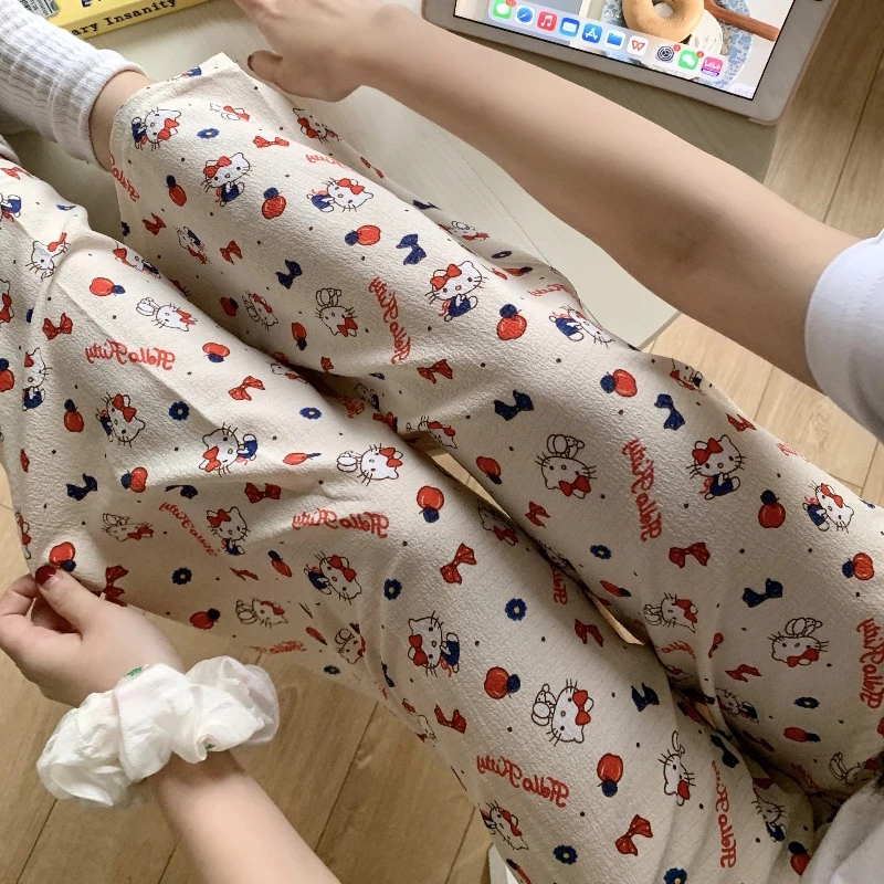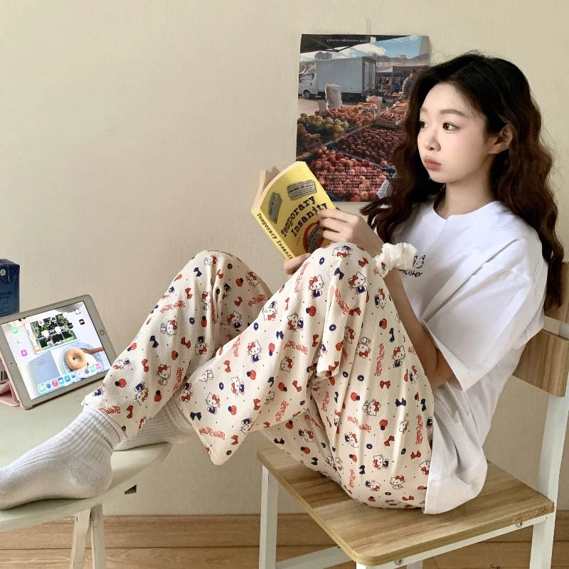 ins长裤睡裤女直筒夏季少女懒人裤休闲裤薄款家居裤条纹印花格子