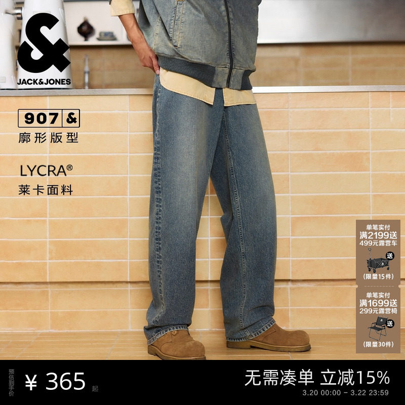 907杰克琼斯男装春季复古莱卡宽松廓形美式黄泥男士牛仔裤长裤子