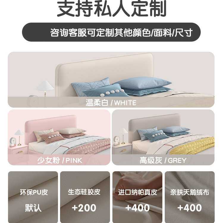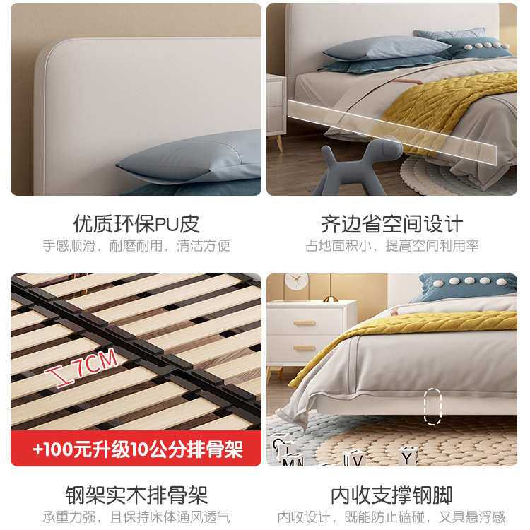 悬浮皮艺床小户型次卧ins风网红轻奢床奶油风简约儿童床