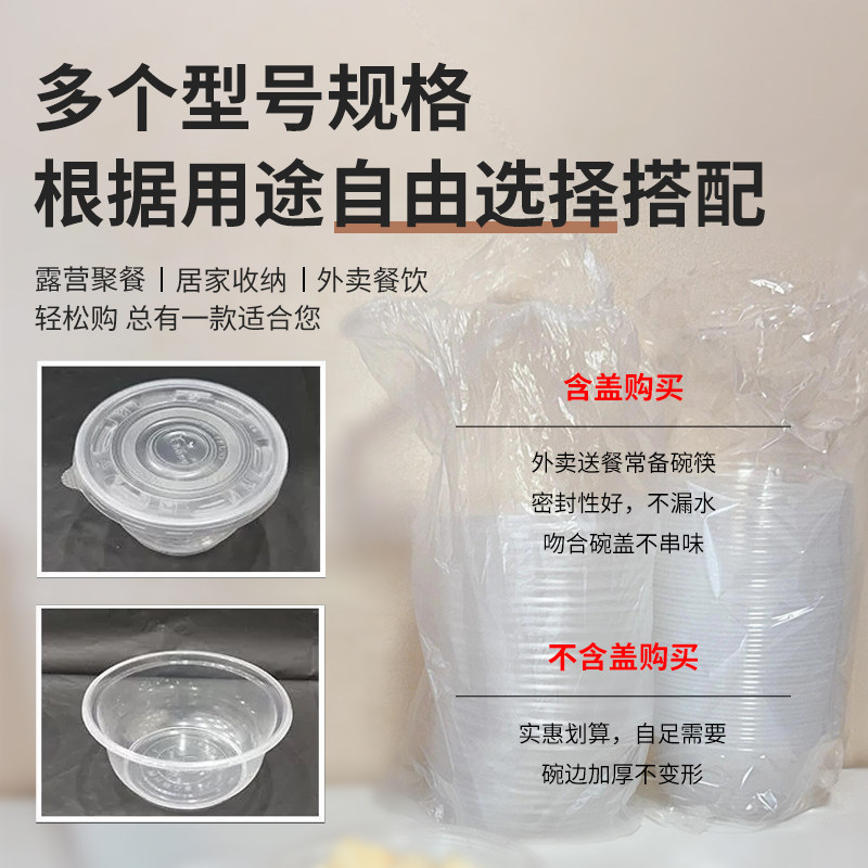 一次性塑料碗圆形无盖360家用商用饭盒胶碗带盖碗圆碗冰粉打包盒