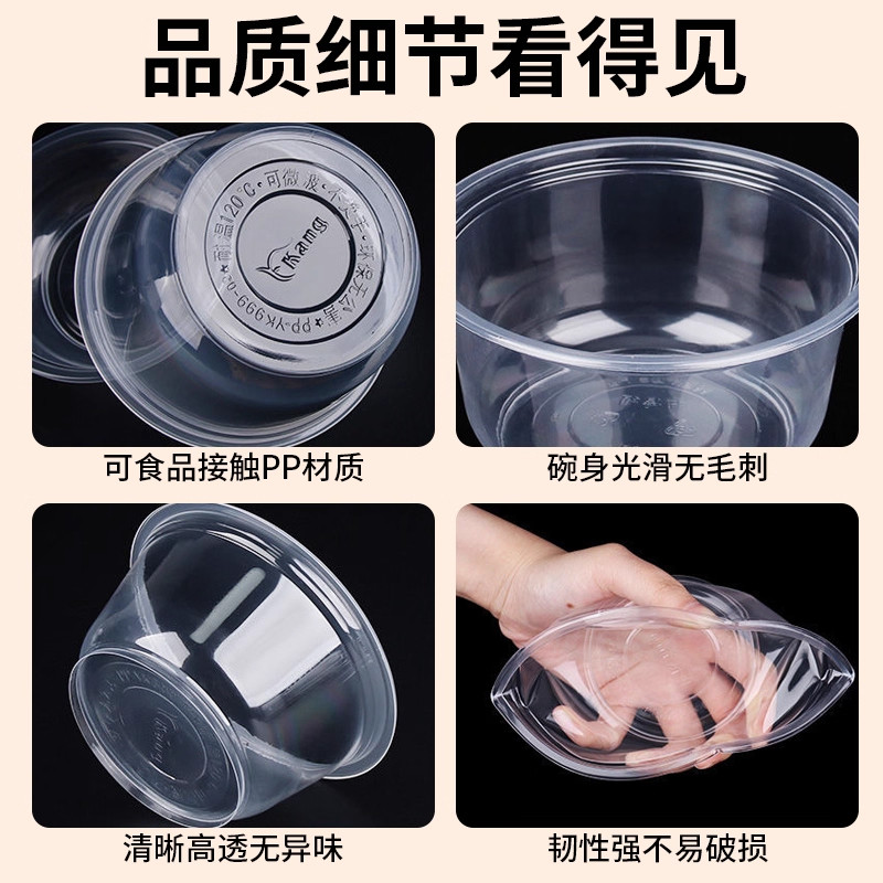 一次性碗塑料家用小碗套装圆形饭碗饭盒打包餐盒餐具冰粉商用碗筷