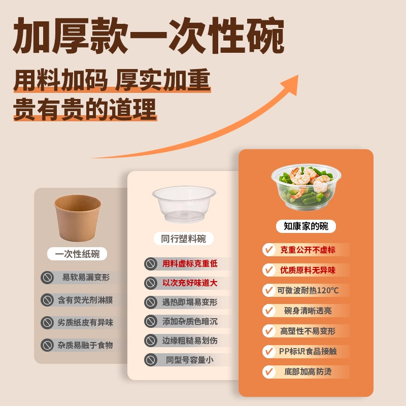 一次性碗食品级饭碗家用小碗塑料圆形碗筷套装商用餐盒饭盒打包盒