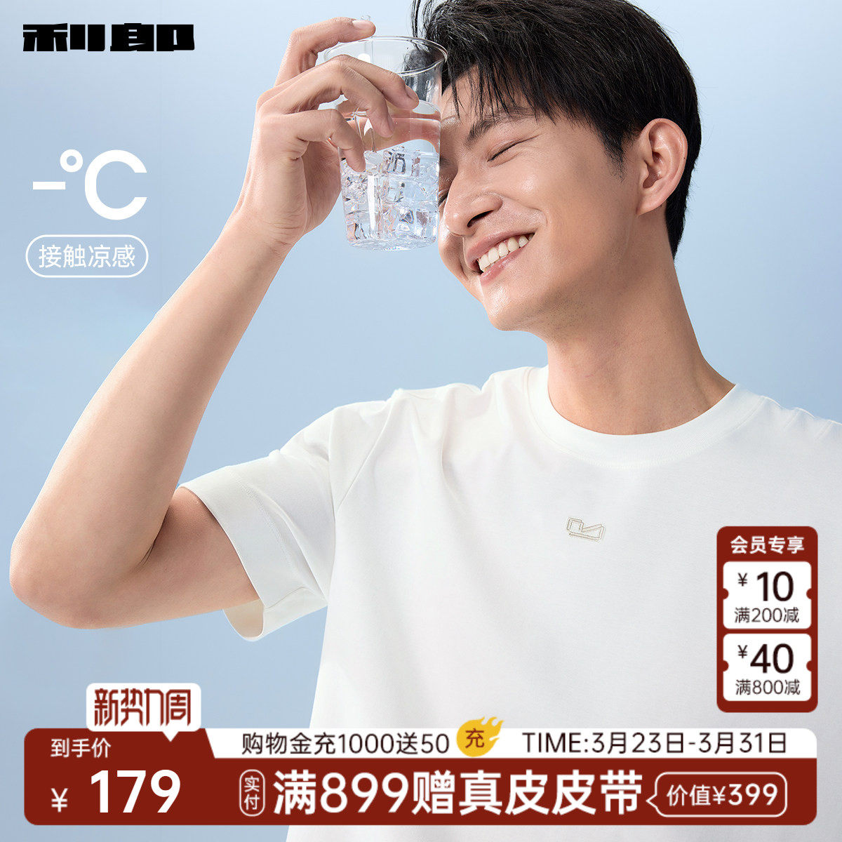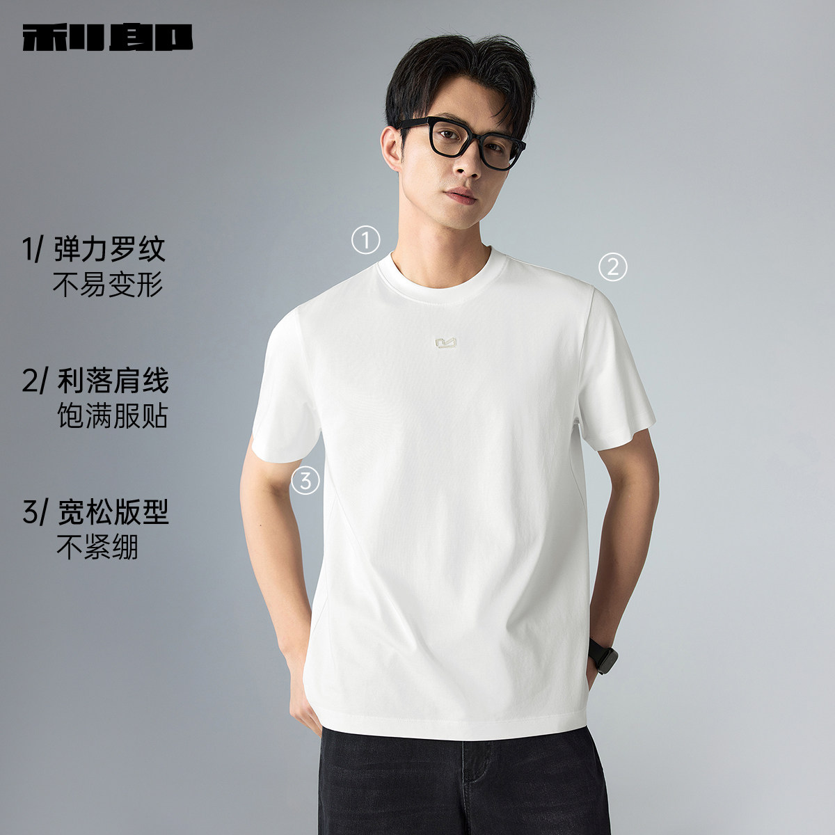 【凉感/抑菌/含莫代尔】利郎官方 短袖T恤男士26夏季宽松刺绣上衣