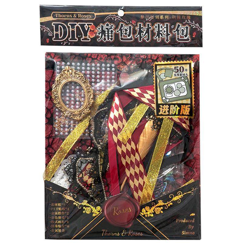 小食量丝带蕾丝痛包diy材料全套扎痛包背景纸二次元装饰贴纸红色