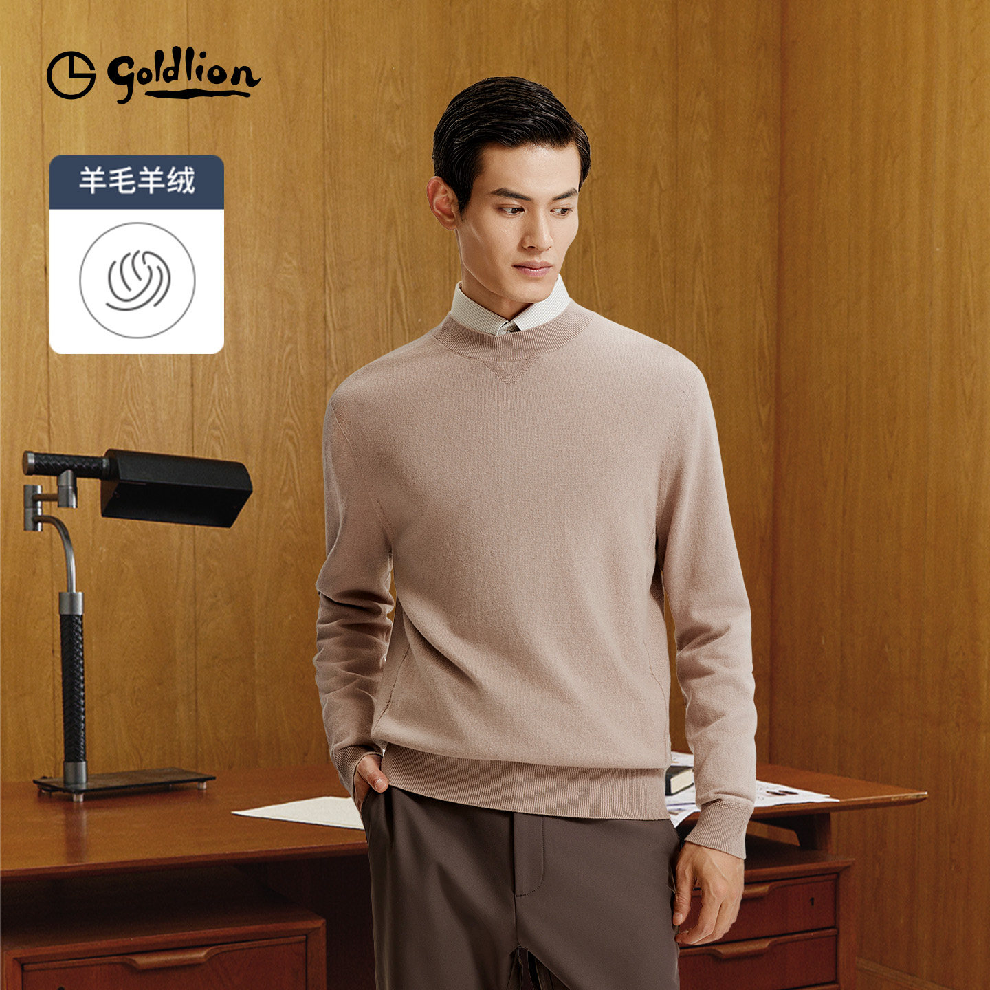 【含羊绒羊毛】金利来秋冬男士保暖宽松圆领套头毛衣针织衫男