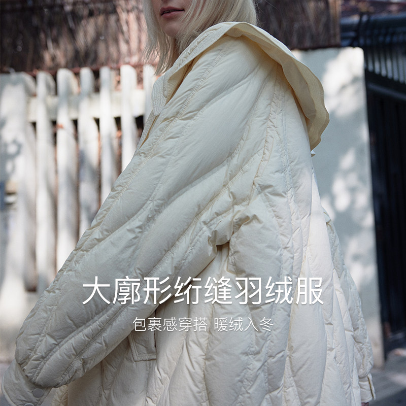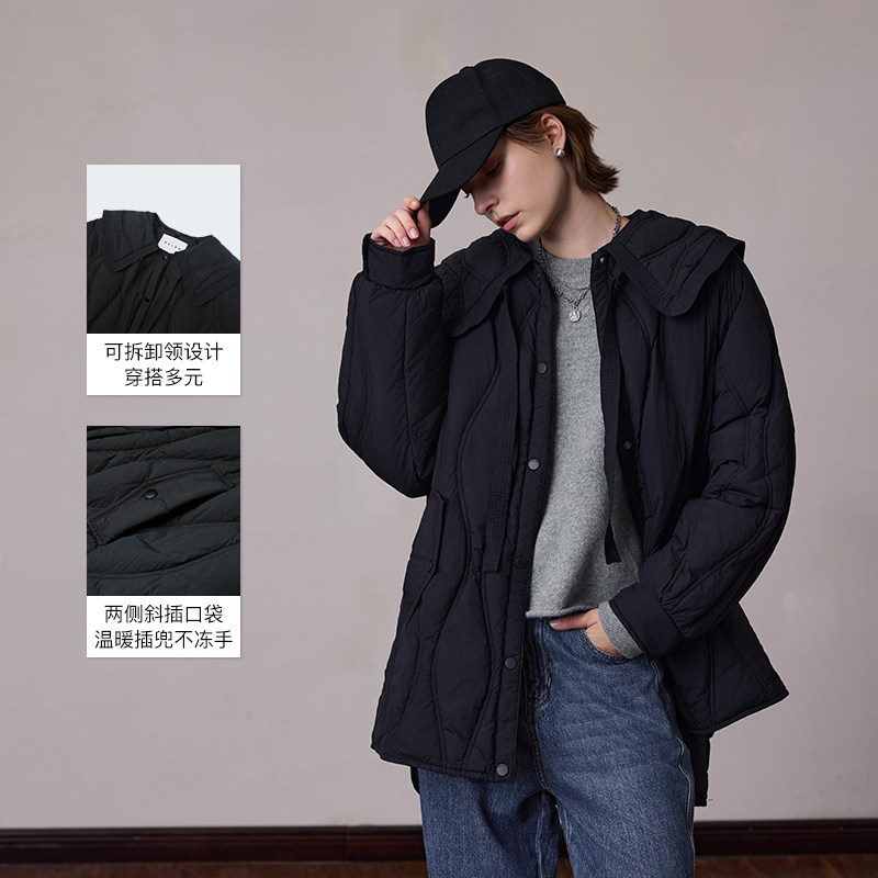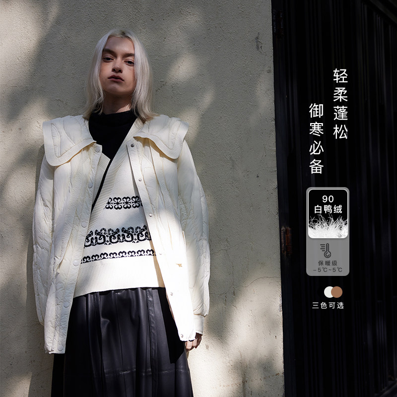 轻盈羽绒/MSLAN秋冬保暖短款廓形可拆领90白鸭绒小个子轻薄羽绒服