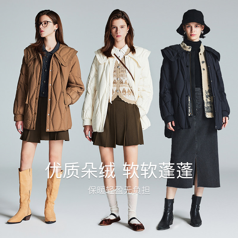 【鞠婧祎同款】鸭鸭2025年冬新款百搭短款女士纯色立领羽绒服外套