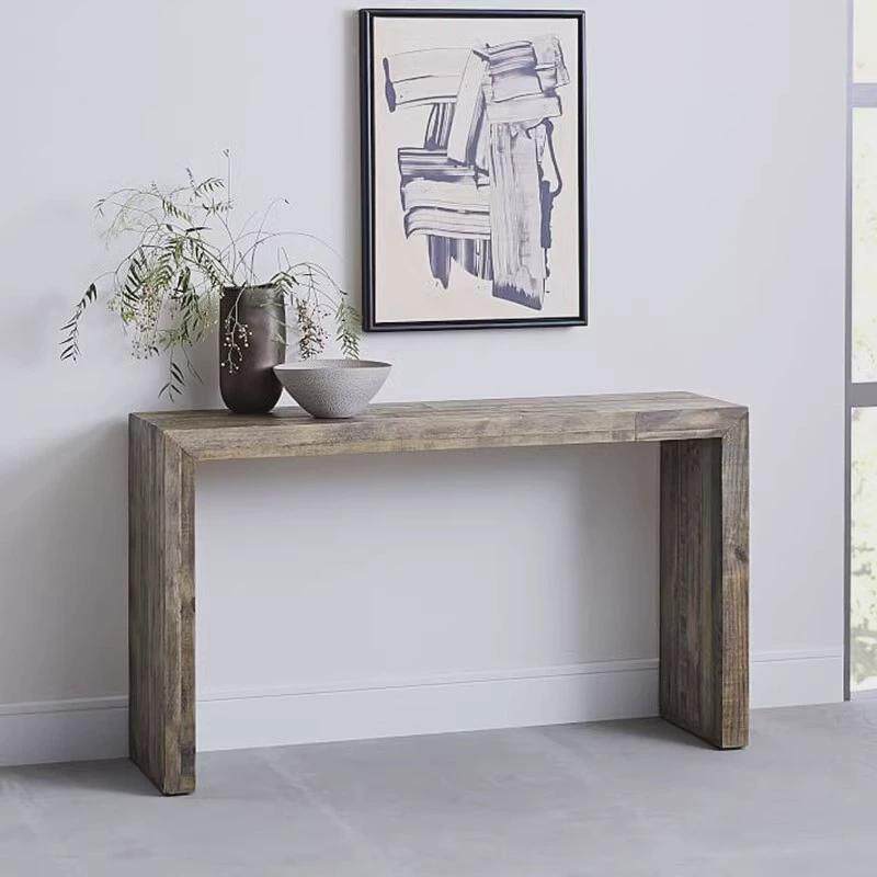 全实木极简粗犷复古风格原木隔断条几靠墙玄关桌隔断案台边供桌