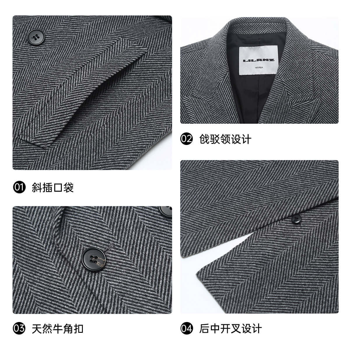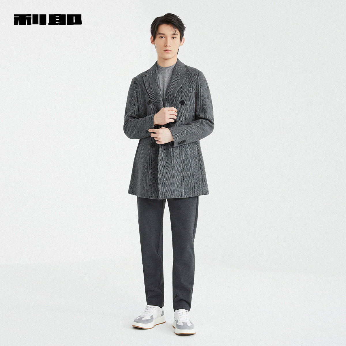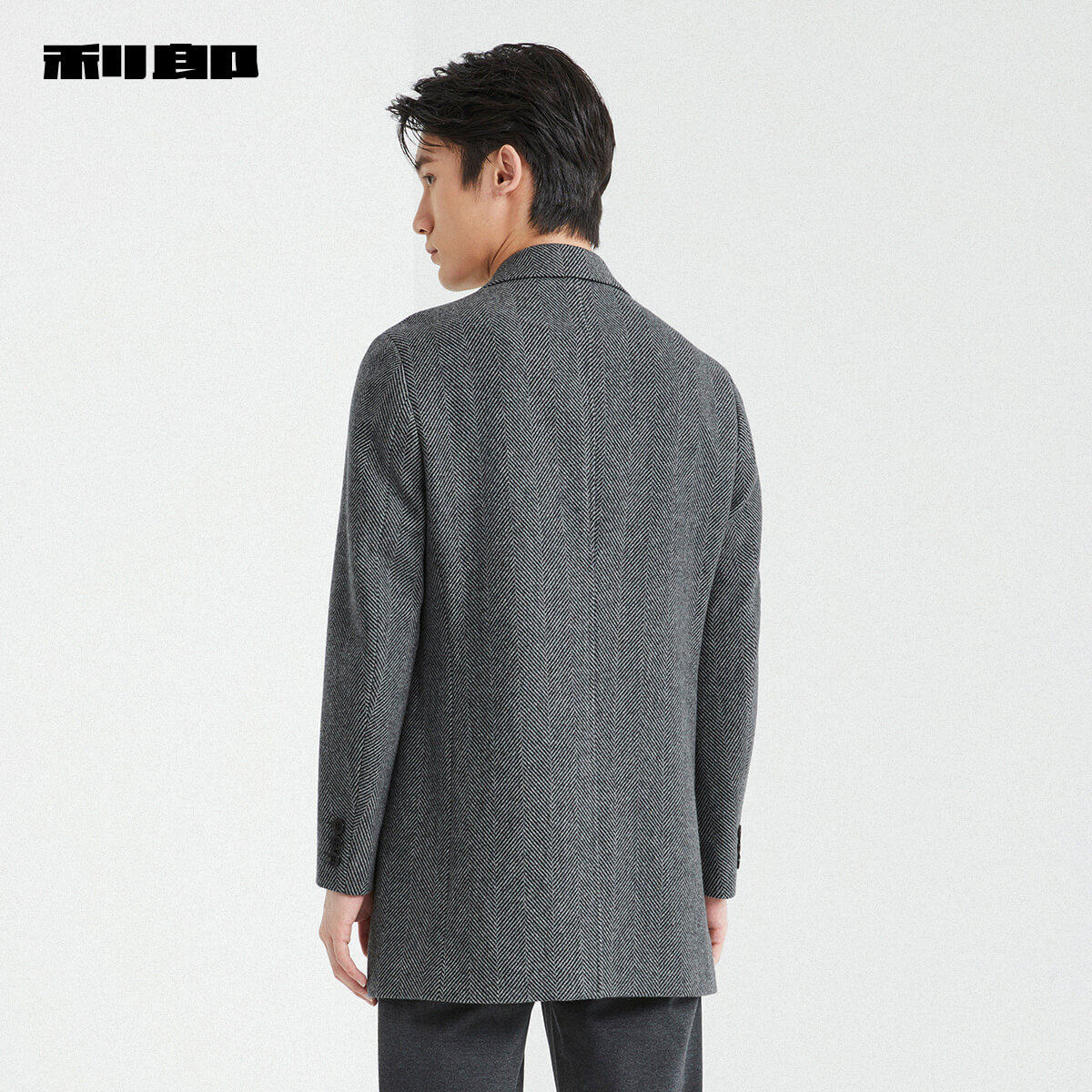 【含山羊绒】利郎官方 毛呢大衣男士戗驳领冬季人字纹外套