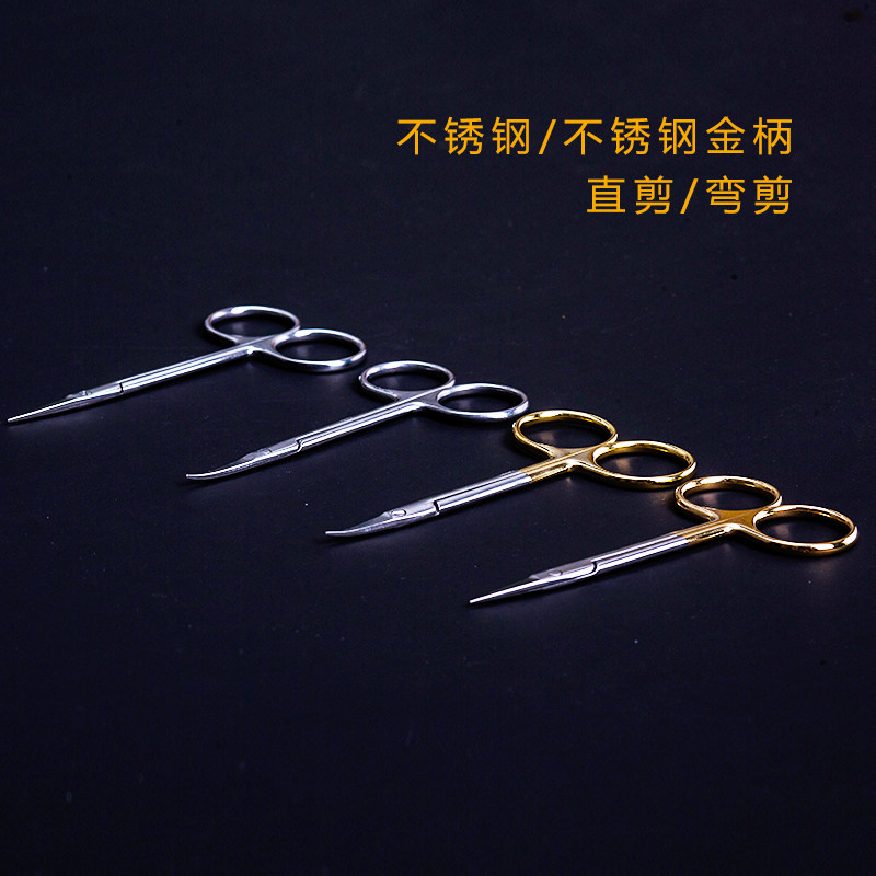 医用精细眼科剪刀医疗不锈钢直弯尖金柄拆线绷带外科美容护士剪刀